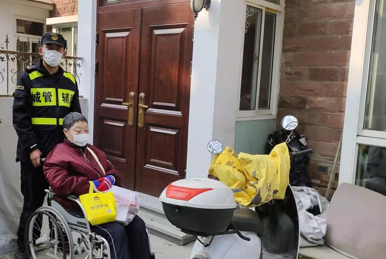 12月24日下午,宗保公司駐周浦市容機動組隊員劉祥幫助老奶奶回家。