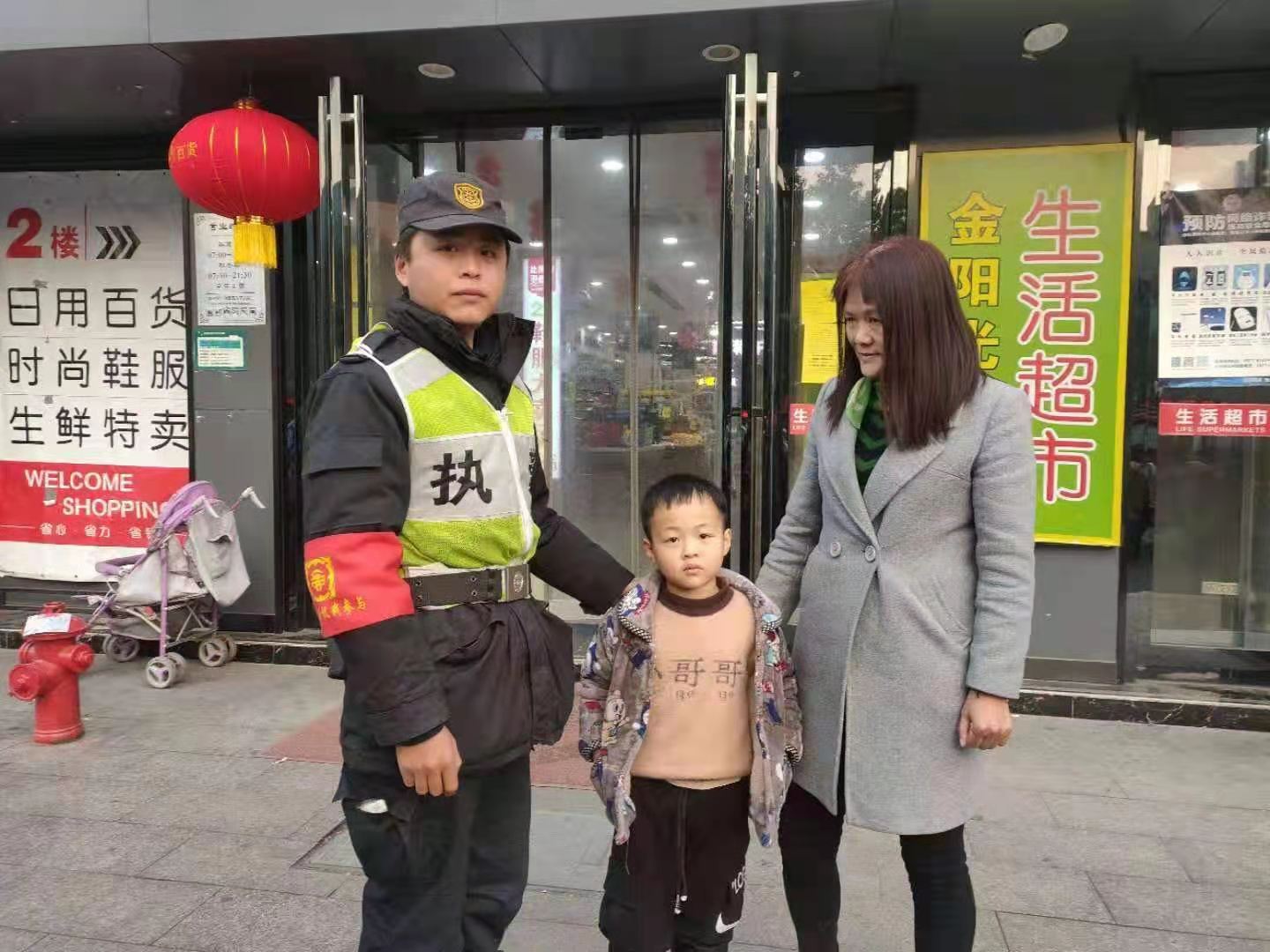 12月27日,宗保公司駐運河護(hù)校安園項目隊員李冠峰、李響幫助走散男童找到家人。