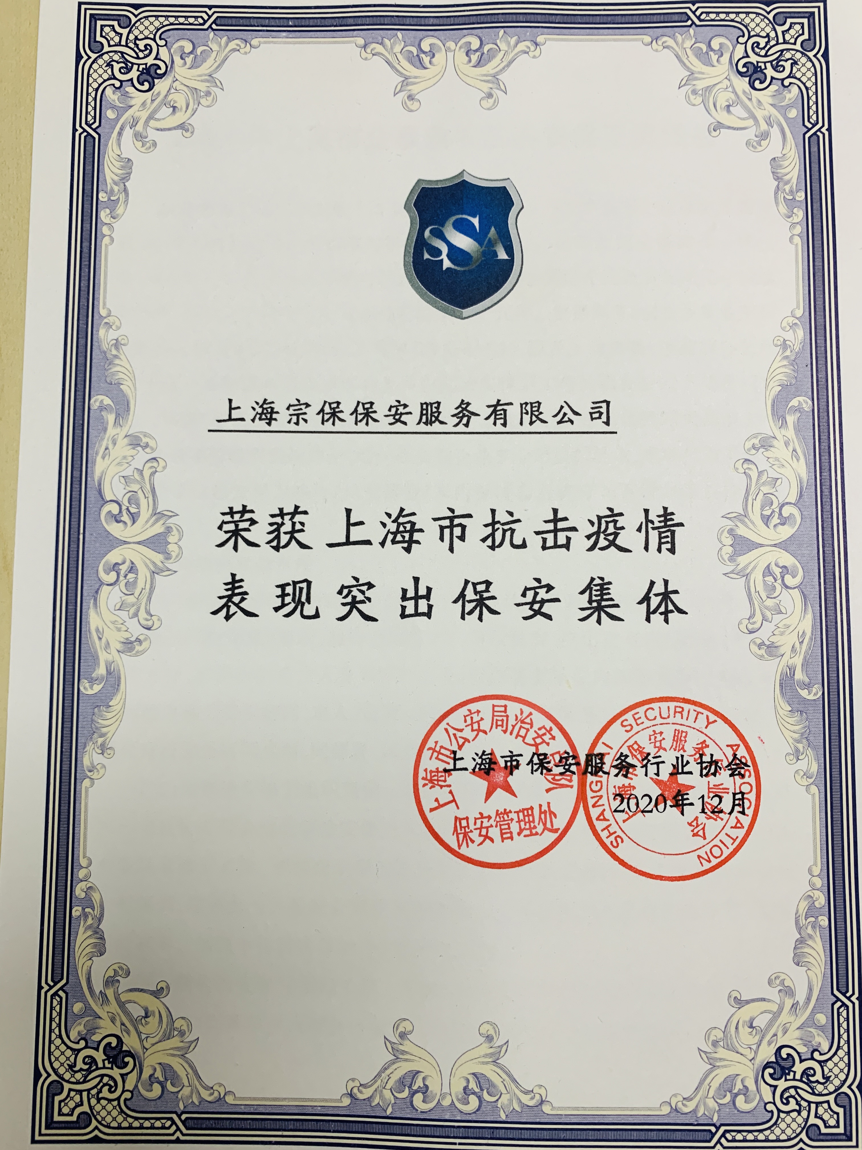 公司被評為“上海市抗擊疫情表現(xiàn)突出保安集體”。