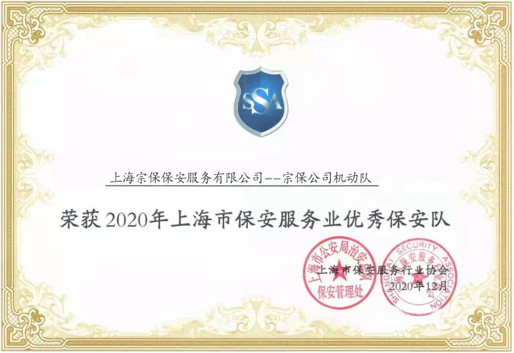 公司機動隊被評為“2020年度上海市保安行業(yè)優(yōu)秀保安隊”。