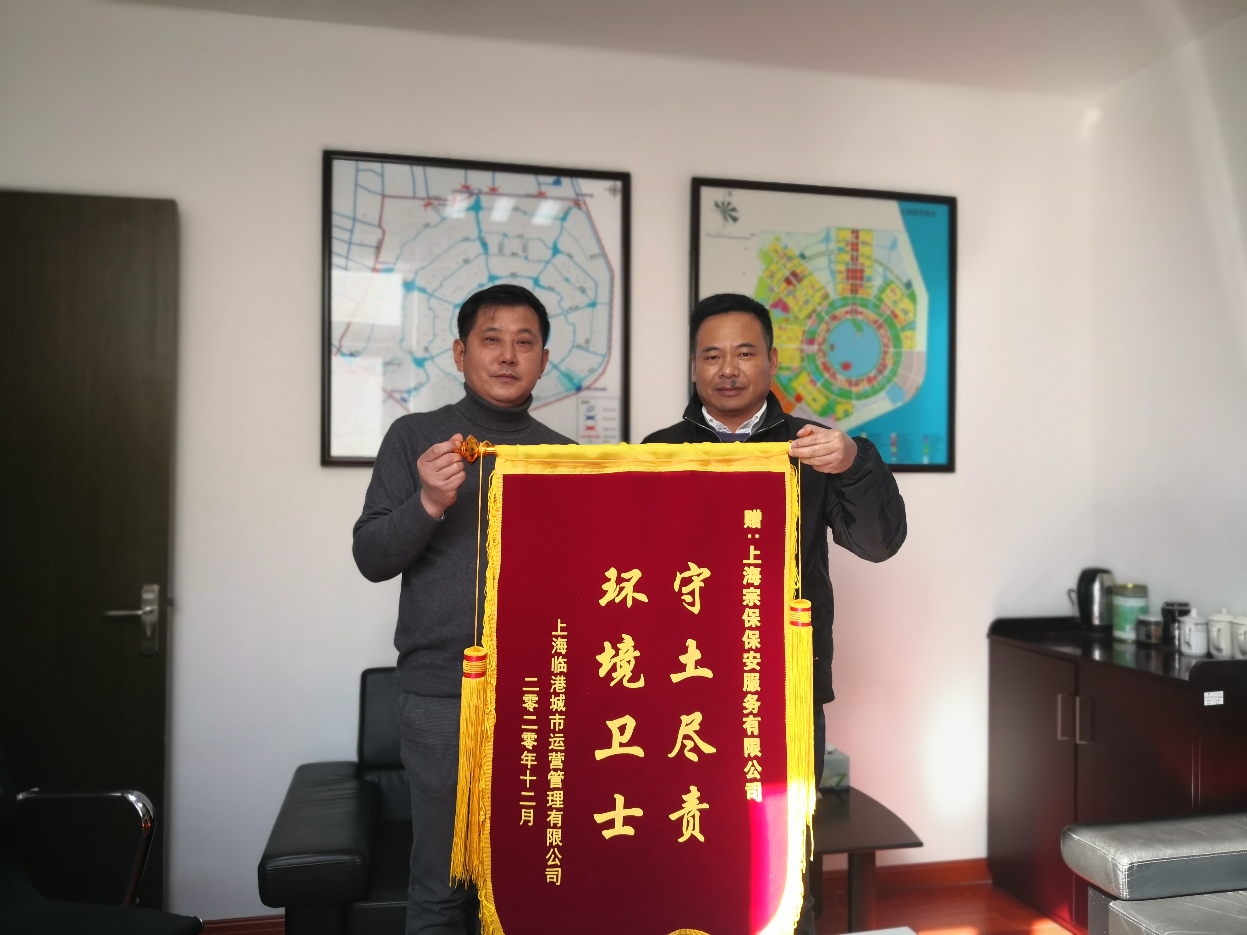 12月30日,宗保公司收到上海臨港城市運(yùn)營(yíng)管理有限公司送來(lái)的一面繡有“守土有責(zé) 環(huán)境衛(wèi)士”的錦旗和一封表?yè)P(yáng)信,信中對(duì)公司隊(duì)員的優(yōu)秀表現(xiàn)提出表?yè)P(yáng)。