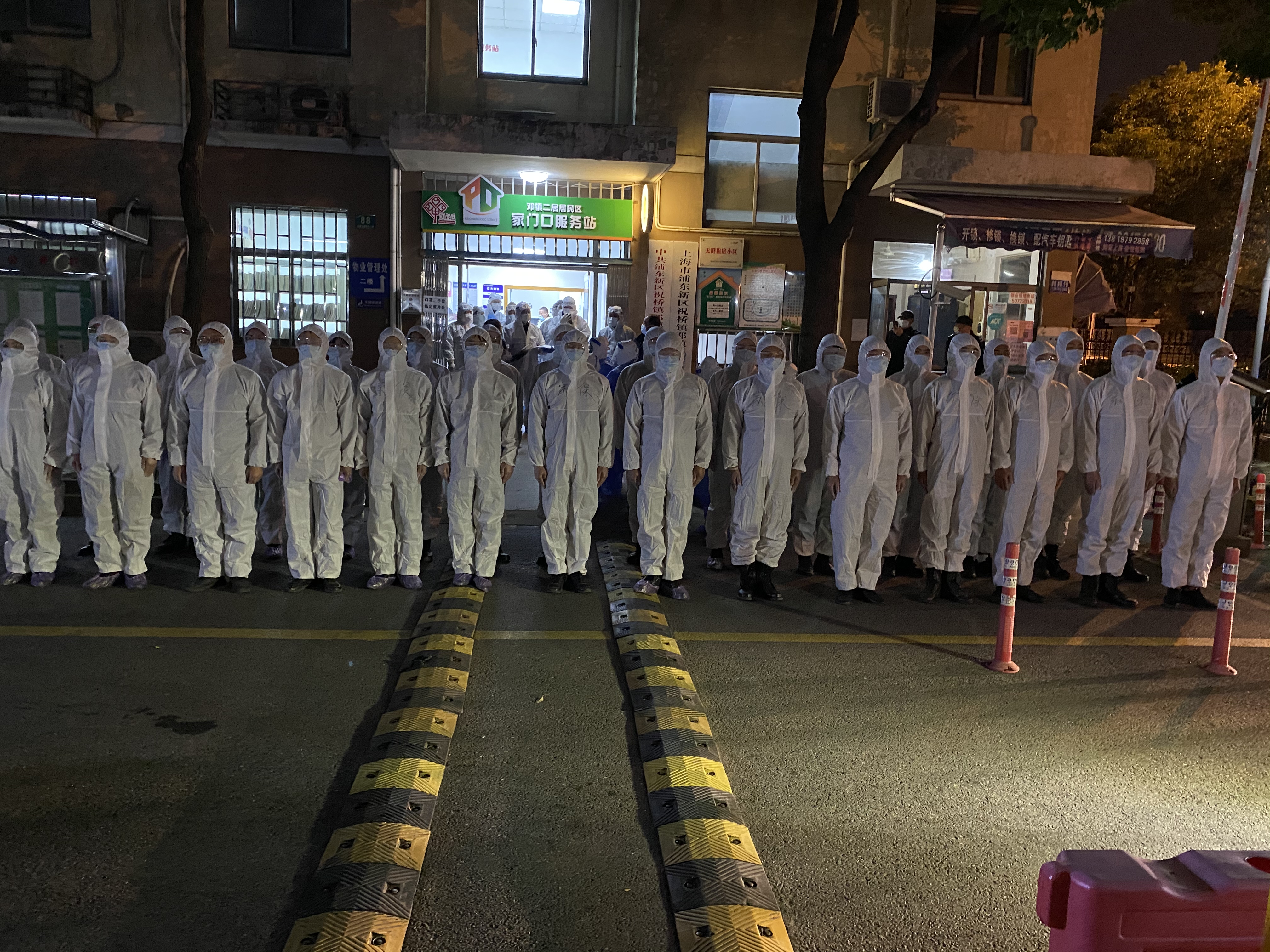 11月份的上海,氣溫驟降,特別是在深夜和凌晨,氣溫降到了最低點(diǎn),凍得隊(duì)員們直打哆嗦,但隊(duì)員們沒有絲毫松懈,不懼危險、不怕辛苦,堅(jiān)守在小區(qū)的各個出入口。