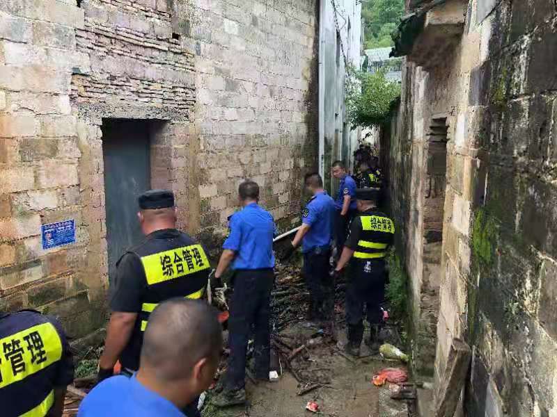 去年7月份,休寧縣遭遇特大洪水,宗保隊(duì)員勇?lián)?dāng)、善作為,積極配合縣城管局進(jìn)行抗洪救援搶險(xiǎn),對(duì)積水道路、塌方路段樹拉警戒線,勸離過(guò)往車輛和群眾;清理雨污水井、雨蓖,清掃路面垃圾,清除路面障礙雜物,確保排水下水口和道路通暢;全面排查隱患區(qū)域、塌方路段、沿線河道,全力保護(hù)人民生命和財(cái)產(chǎn)安全。