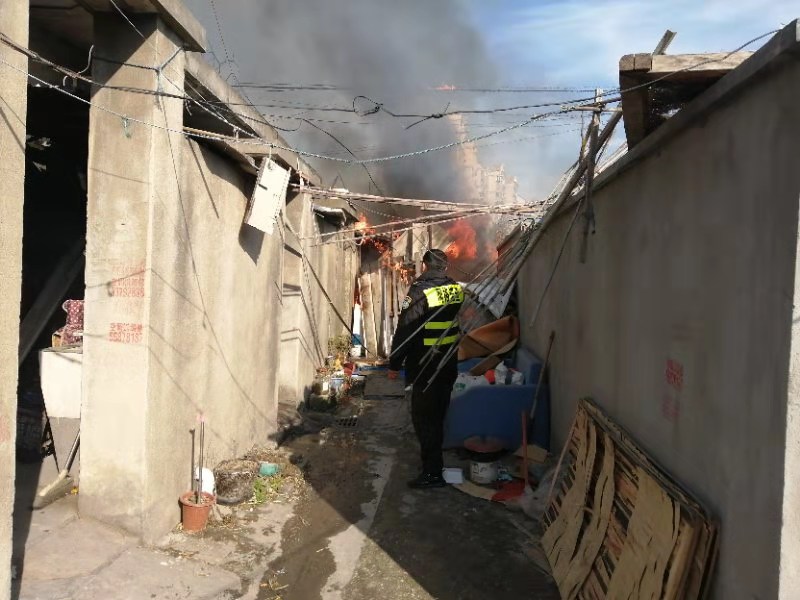 當(dāng)天12:40,王如龍、王金齊、李旭龍三人巡邏至浦東北路與草高支路路口時(shí),發(fā)現(xiàn)附近地塊里有濃煙冒起,便趕緊將電瓶車停好,上前查看。原來是有人點(diǎn)火燒干草,但由于當(dāng)時(shí)風(fēng)大,把周圍的干草引燃了,火勢很快蔓延到了附近居民區(qū)。