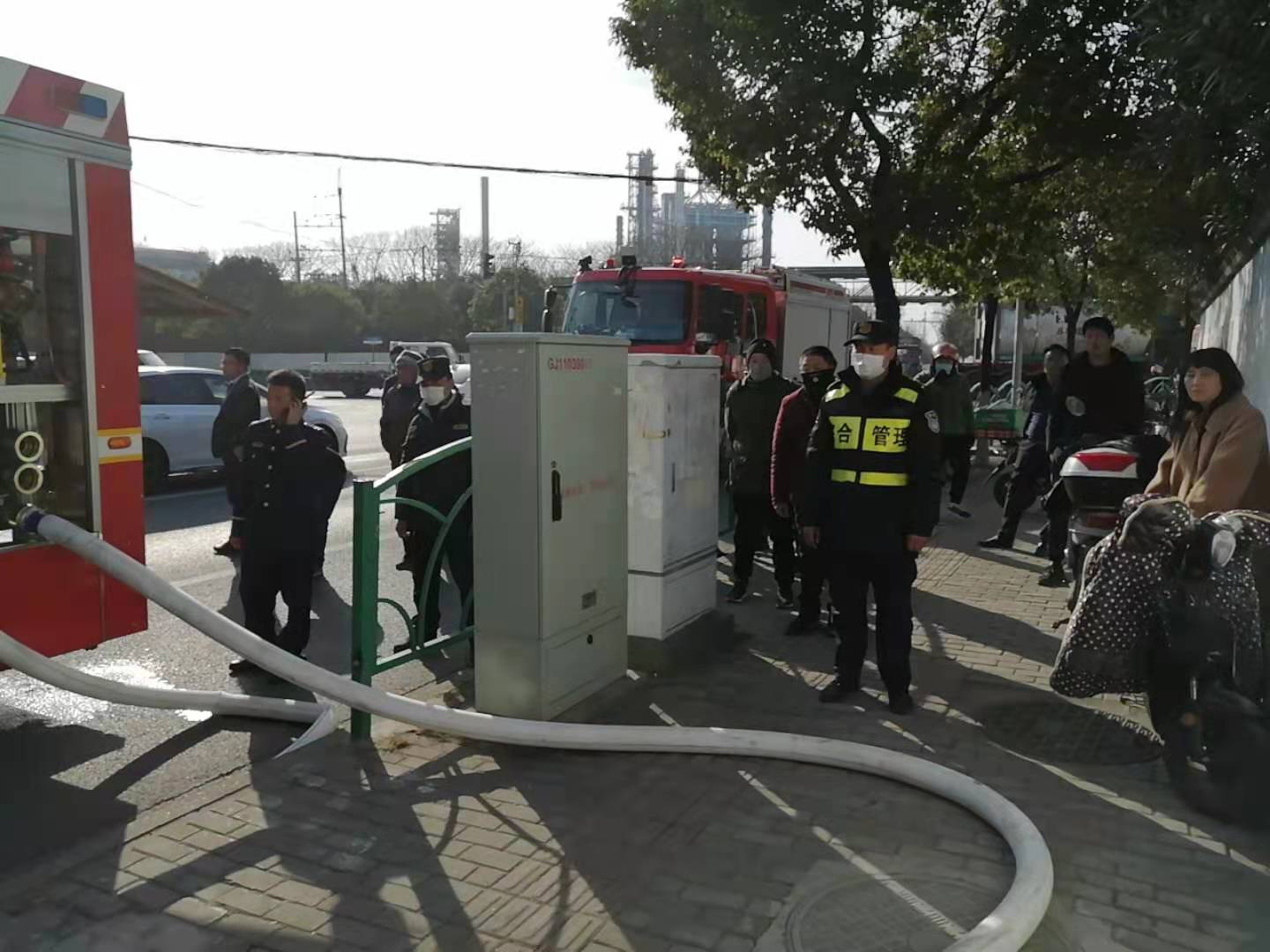 1月14日,宗保公司駐高橋市容項(xiàng)目隊(duì)員發(fā)現(xiàn)火災(zāi)展開救援,受到好評。