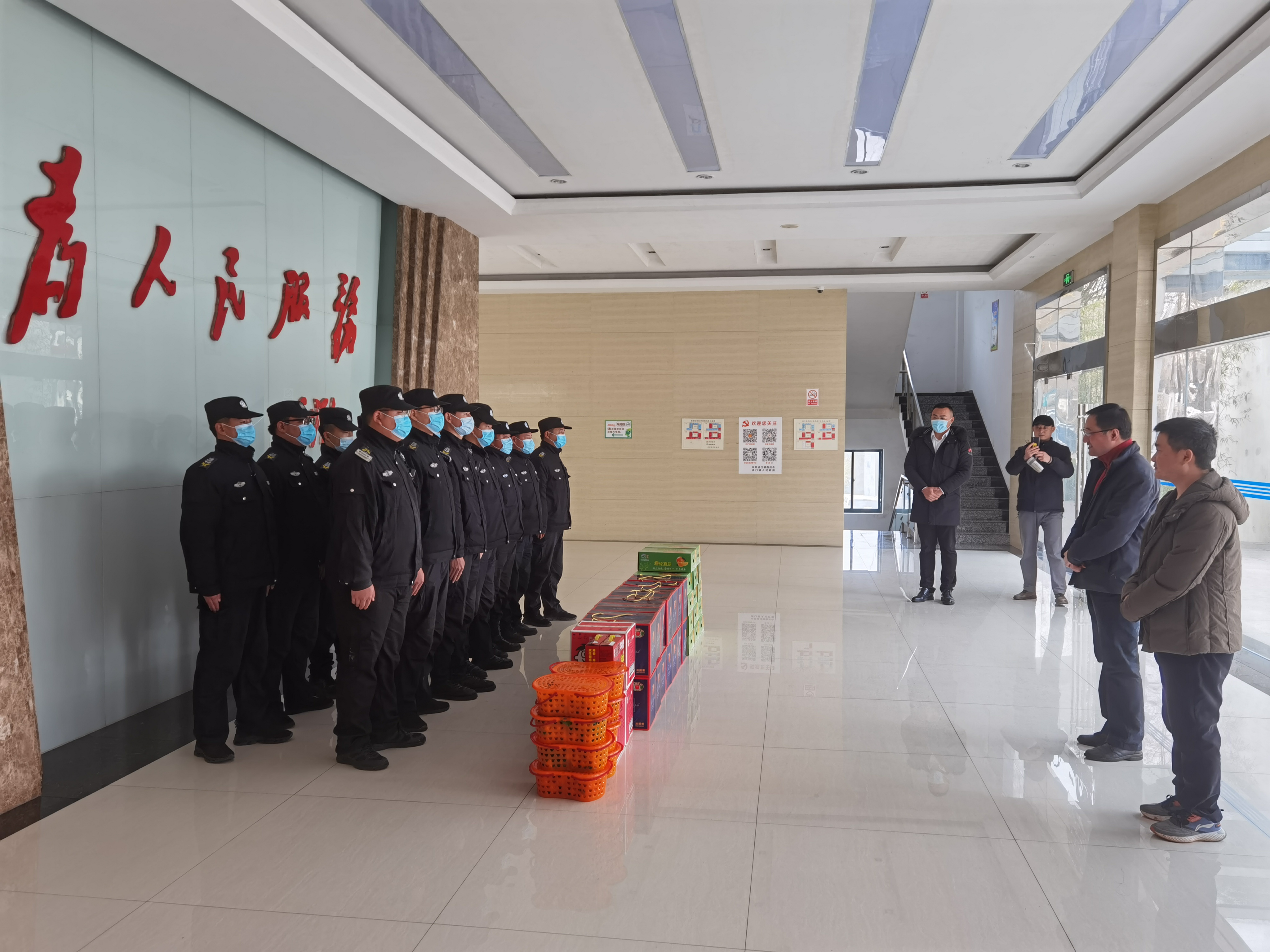 2月12日,湯口鎮(zhèn)黨委書(shū)記胡煒、黨委委員楊鵬翔走訪(fǎng)慰問(wèn)宗保駐湯口市容項(xiàng)目堅(jiān)守一線(xiàn)的員工。