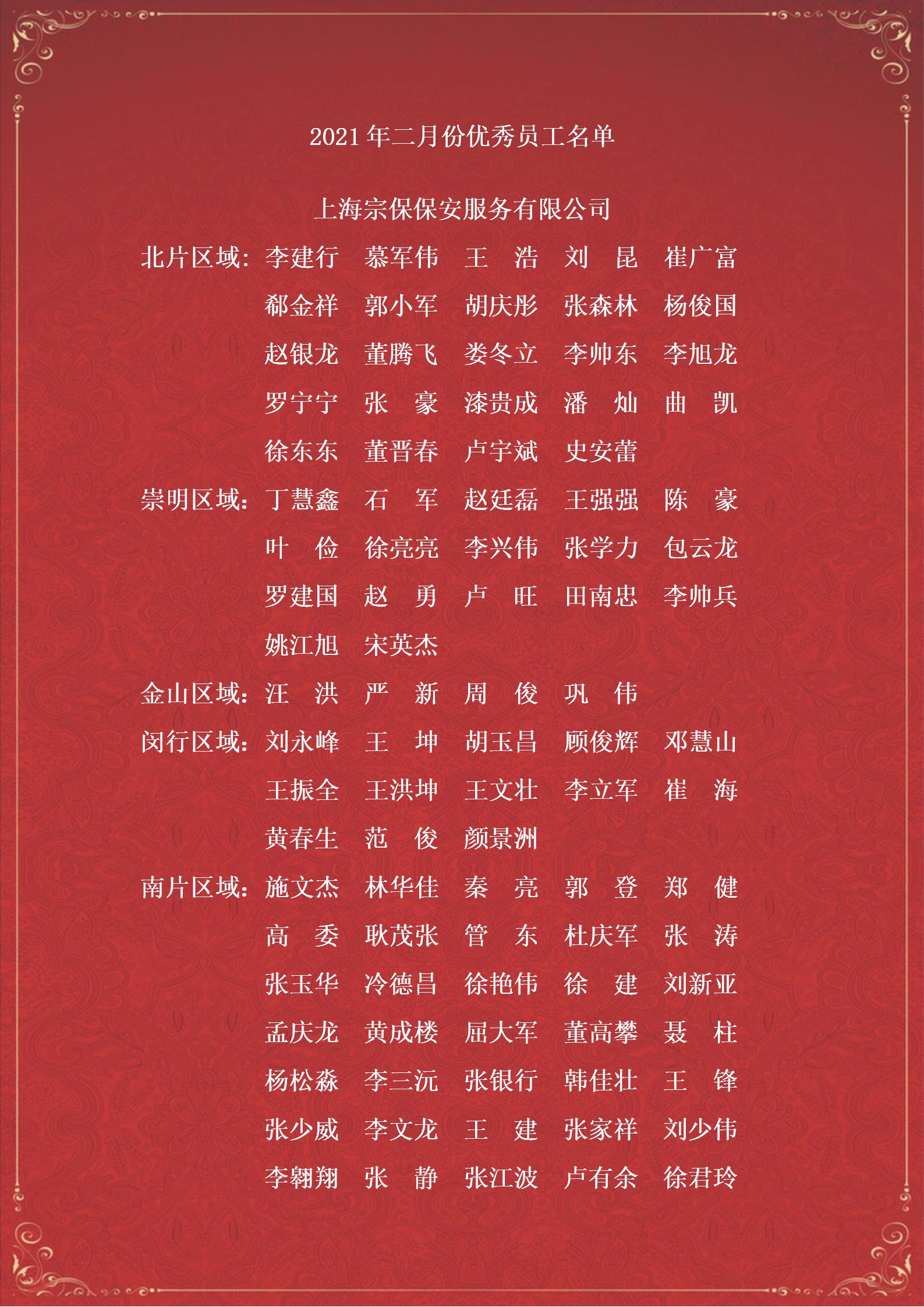附:2月份優(yōu)秀員工名單