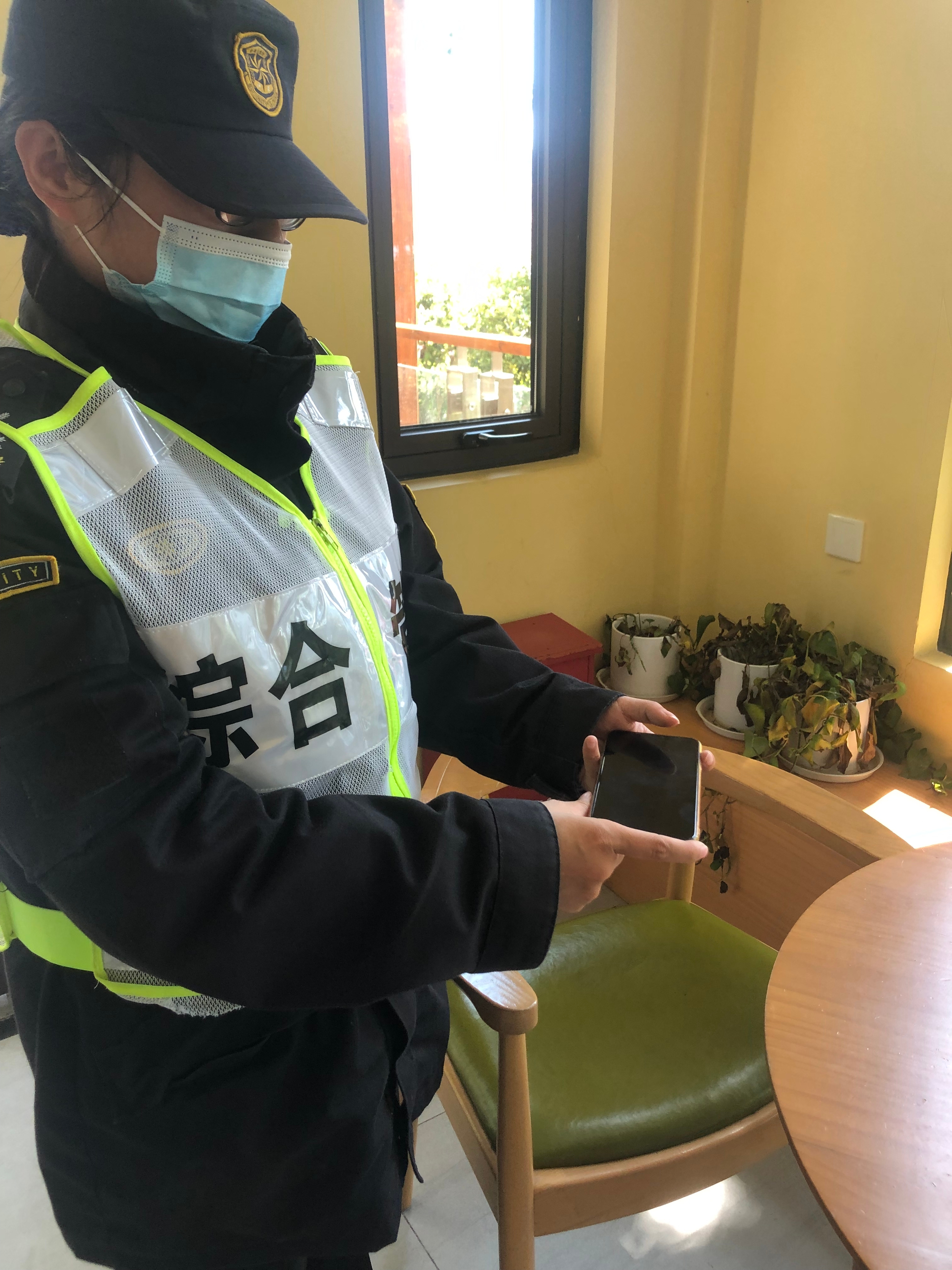 當(dāng)日11:30左右,趙春雷在東南萊市場(chǎng)弄堂口巡邏時(shí),撿到一部手機(jī),便立刻上報(bào)當(dāng)班組長(zhǎng),并于隨后趕到現(xiàn)場(chǎng)的當(dāng)班組長(zhǎng)一起留在原地等待失主。