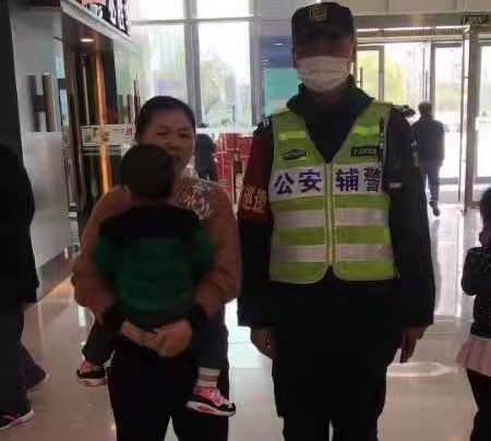 4月3日,宗保公司駐周浦輔警項(xiàng)目隊(duì)員耿茂張幫助走散兒童找到家人。