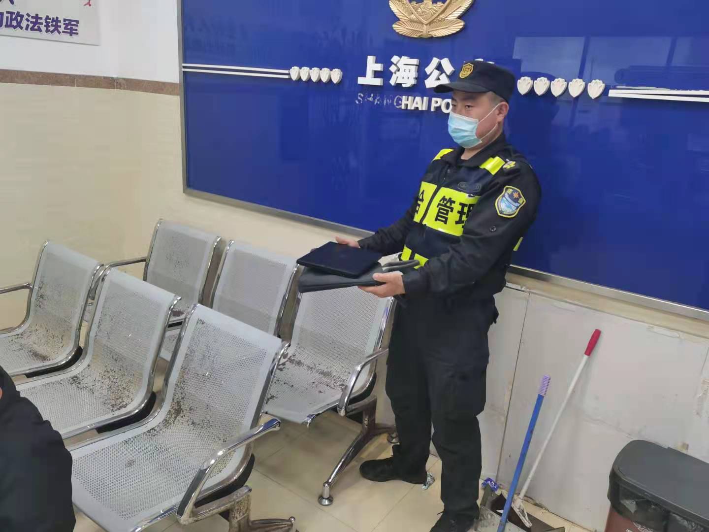 當(dāng)天12:10, 徐建在沈梅東路163號(hào)社區(qū)衛(wèi)生服務(wù)中心值勤時(shí),發(fā)現(xiàn)在路口的共享單車(chē)車(chē)筐里有一個(gè)斜挎包無(wú)人認(rèn)領(lǐng),包內(nèi)有一部新手機(jī)、充電器和耳機(jī)等物品。因擔(dān)心斜挎包被非失主拿走,在無(wú)法聯(lián)系失主、又考慮到失主可能會(huì)回來(lái)尋找的情況下,徐建便在原地等待。