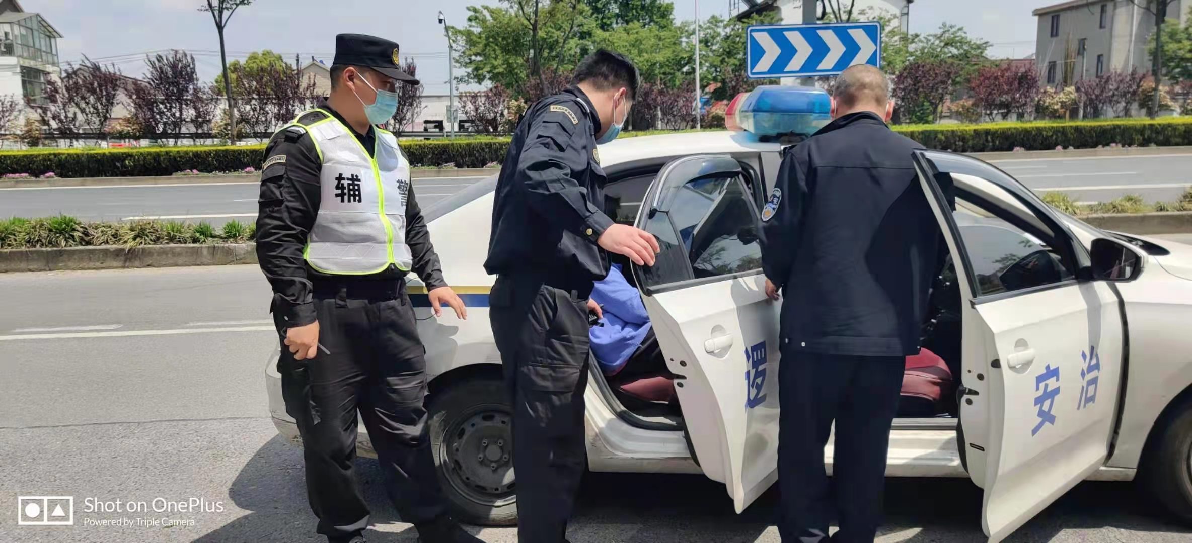 4月27日,宗保公司駐周浦市容項目隊員彭勇、李來者救助車禍傷者。