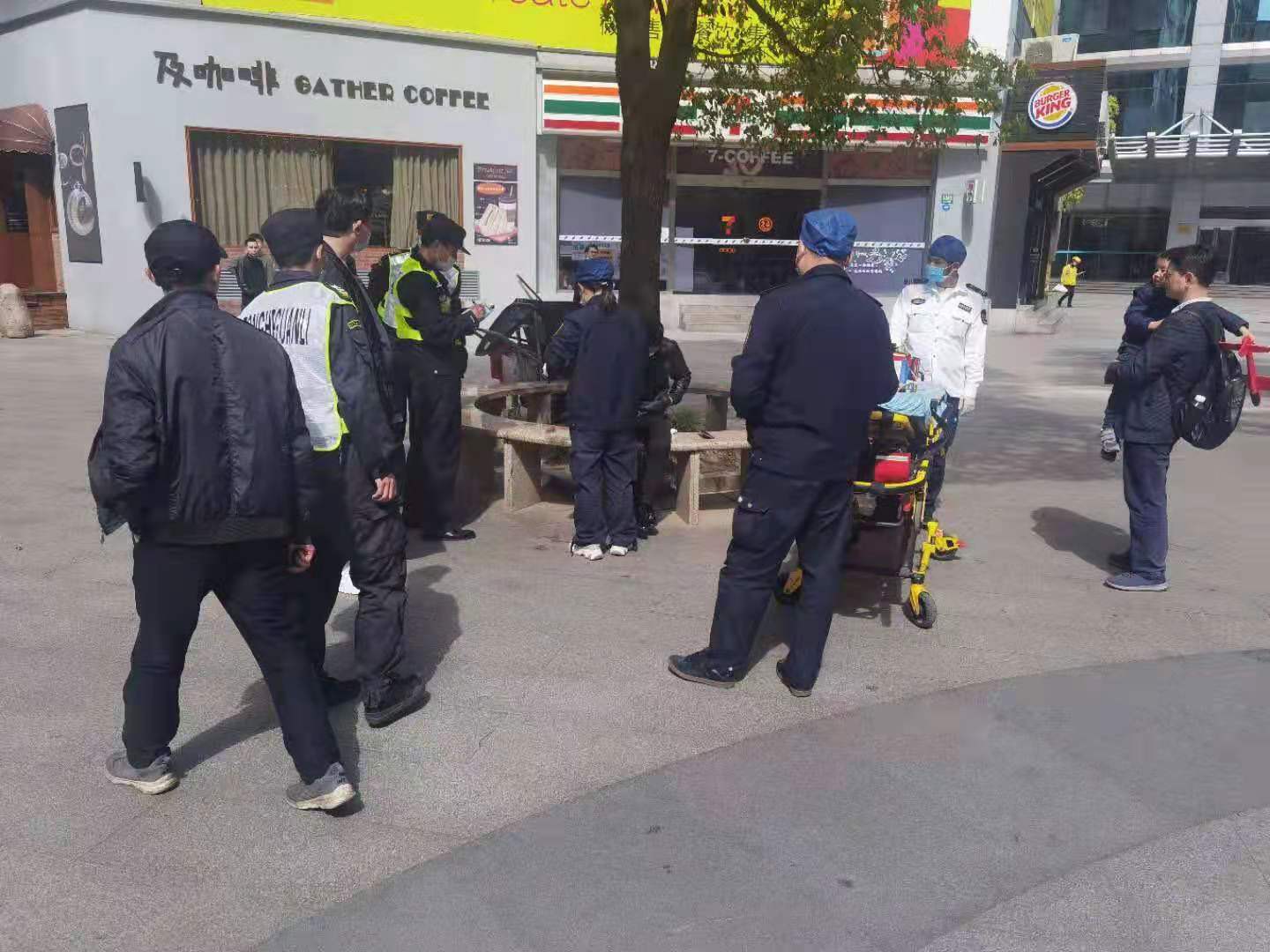 4月10日,宗保公司駐陸家嘴綜合管理項目隊員救助暈倒男子。