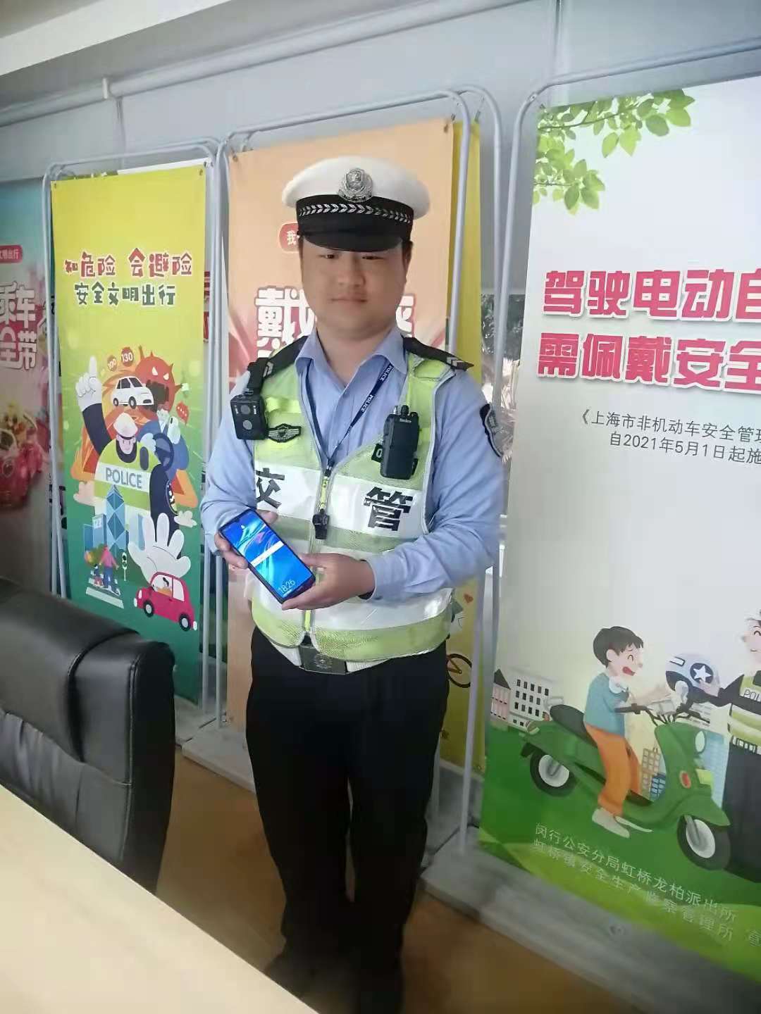 隊(duì)員巡邏撿手機(jī) 歸還失主獲贊譽(yù)—虹橋交管輔警項(xiàng)目隊(duì)員撿到手機(jī)
