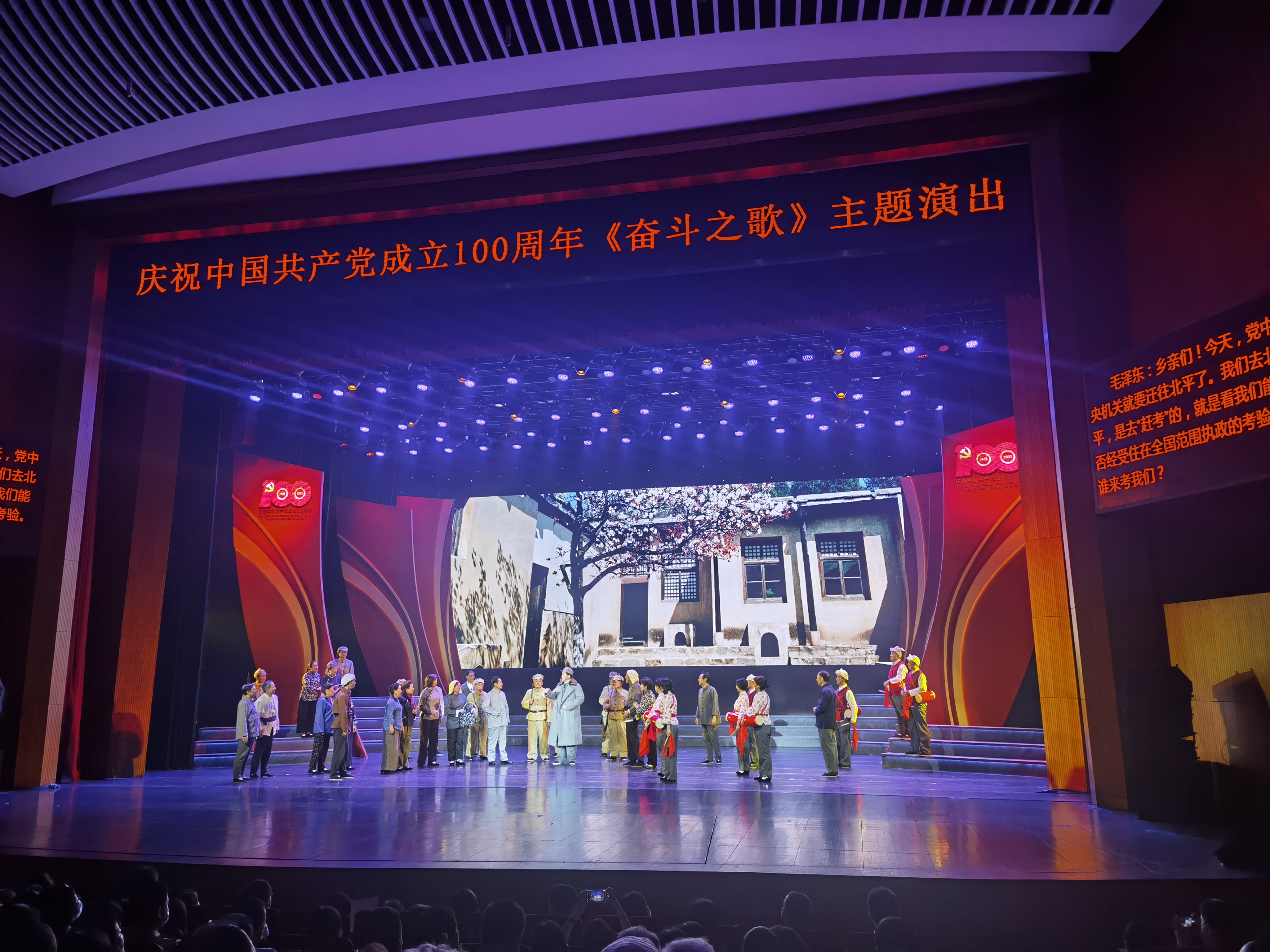 演出從6月8日開始至6月10日結(jié)束,包含四個(gè)篇章:“崢嶸歲月稠”“日月?lián)Q新天”“奔涌東方潮”“奮進(jìn)新時(shí)代”,分別反映了黨在新民主主義革命、社會主義革命和建設(shè)時(shí)期,改革開放和中國特色社會主義進(jìn)入新時(shí)代這四個(gè)階段,團(tuán)結(jié)帶領(lǐng)中國人民不斷從勝利走向勝利的光輝歷程。