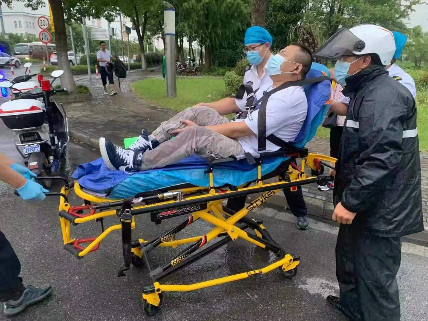 很快,救護(hù)車和男子家人趕到了現(xiàn)場(chǎng),何全義協(xié)助將男子抬上救護(hù)車,送往醫(yī)院救治。