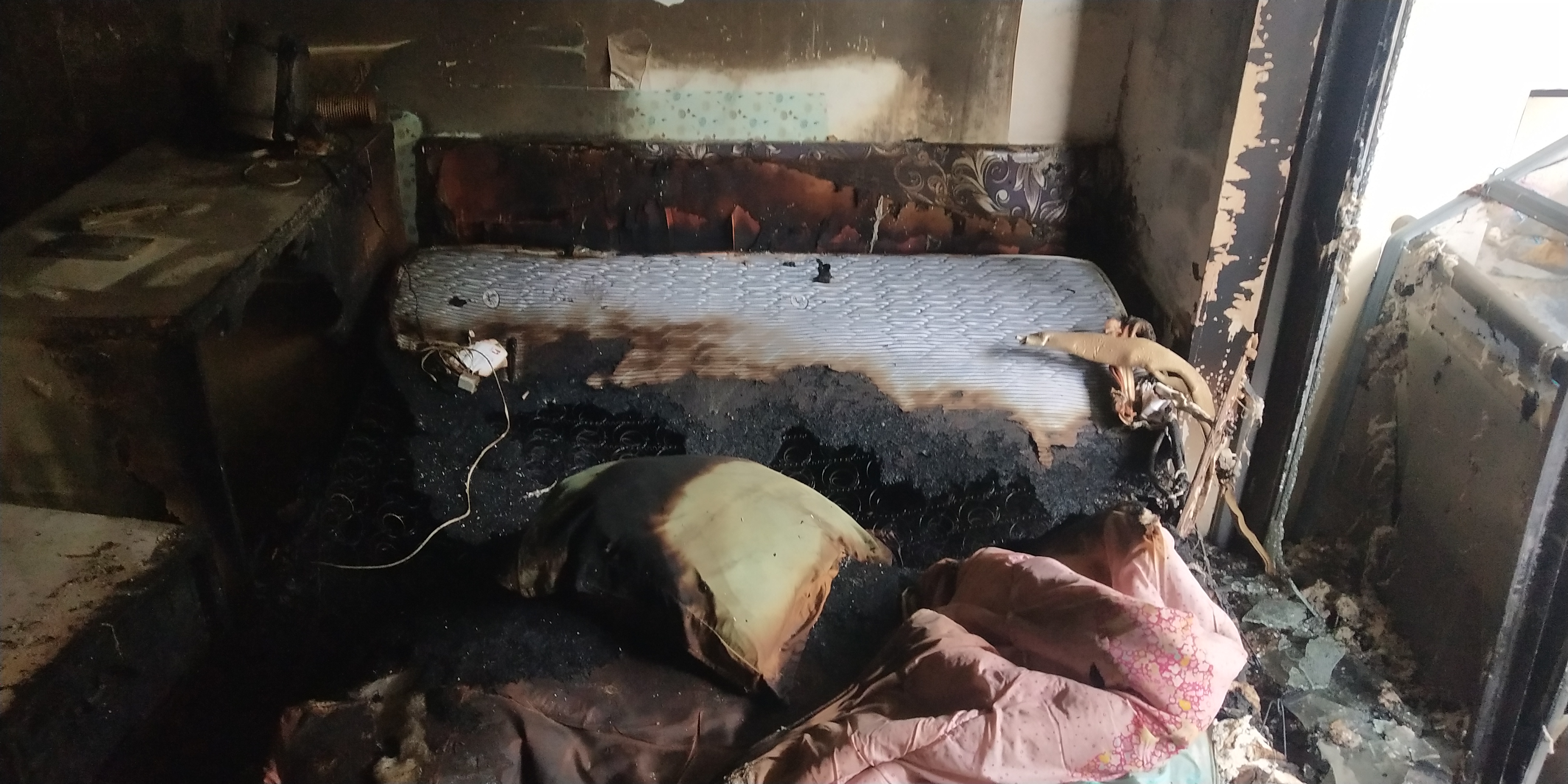 經(jīng)確認(rèn)現(xiàn)場沒有人員被困后,在現(xiàn)場保安人員的配合下,立即切斷電源開關(guān),鎖定房間床上物品著火源,利用樓道墻上消火栓對準(zhǔn)火源噴射,直至火源徹底熄滅。消防救援隊(duì)人員也很快趕到現(xiàn)場,社區(qū)微型消防站人員與他們進(jìn)行了交接,將現(xiàn)場滅火情況向他們作了匯報(bào)。