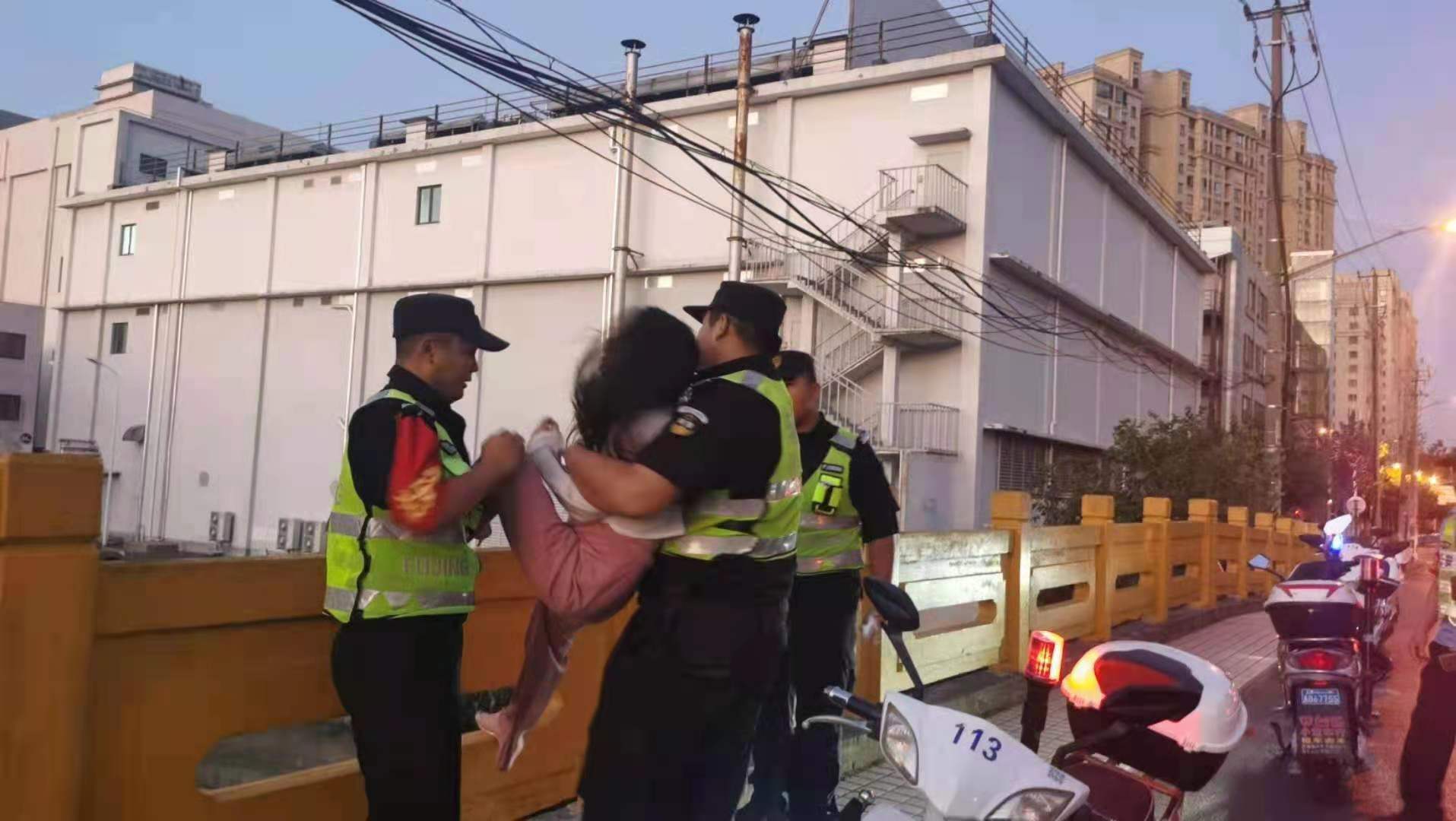 正當三人準備上前詢問時,女子突然將手機扔到地上,跑向橋邊護欄,就要往河里跳。情況危急,王楷迪顧不得多想上前一把將其抱住。組長李武召一邊安慰女子,一邊讓張永熠向派出所值班室報告情況。