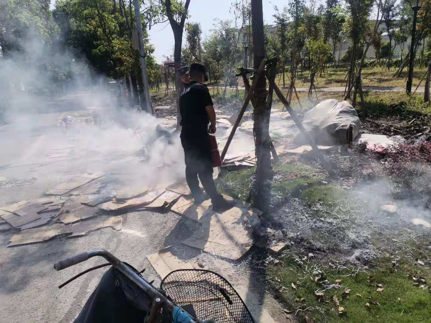 騎三輪車的師傅一再向隊員表示感謝,并為自己拉著紙盒還吸煙、差點釀成大禍而自責(zé)。同時,隊員也提醒三輪車師傅,廢紙品特別容易起火燃燒,一定要有防火意識,避免意外的發(fā)生。