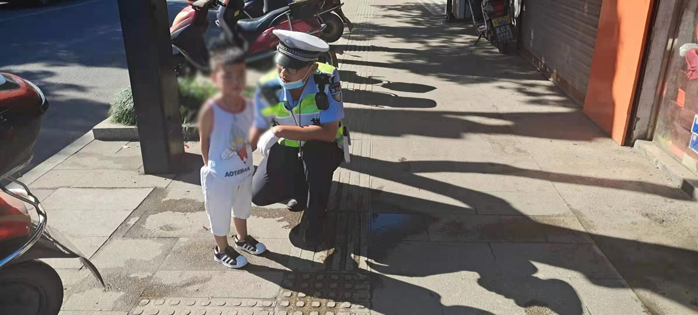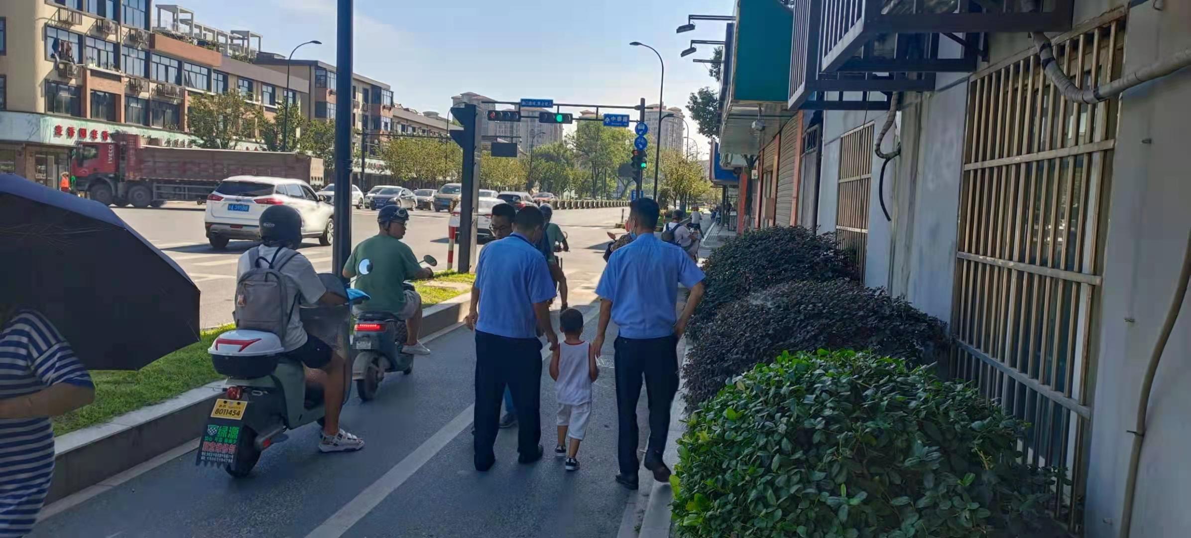 當天9:00,宋清華在中泰路杭泰路路口值勤時,發(fā)現(xiàn)一個小男孩獨自在馬路邊徘徊,身邊沒有大人陪同,無助地站在路旁。見此情景,宋清華立即上前詢問,得知小男孩與家人走散了。