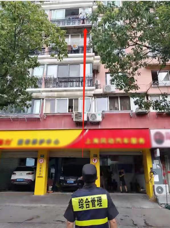 當(dāng)天10:05,徐周巡邏至楊南路697號(hào)時(shí),發(fā)現(xiàn)路邊一樓棟四樓一住戶陽(yáng)臺(tái)外,一名男子站在欄桿的邊緣處,一直大聲對(duì)著屋里的人嚷嚷,情緒十分激動(dòng),疑似有要跳樓的跡象。徐周感覺(jué)到事情的嚴(yán)重性,急忙撥打派出所電話,并將情況上報(bào)了項(xiàng)目班組長(zhǎng)。