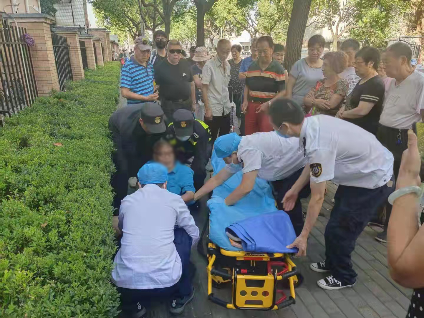 在等待救護車的過程中,劉大旺負(fù)責(zé)守在老人身邊,以防二次傷害,王龍祥則在現(xiàn)場負(fù)責(zé)維持秩序。很快,救護車趕到現(xiàn)場,兩人協(xié)助醫(yī)護人員將老人抬上救護車,送往醫(yī)院救治。