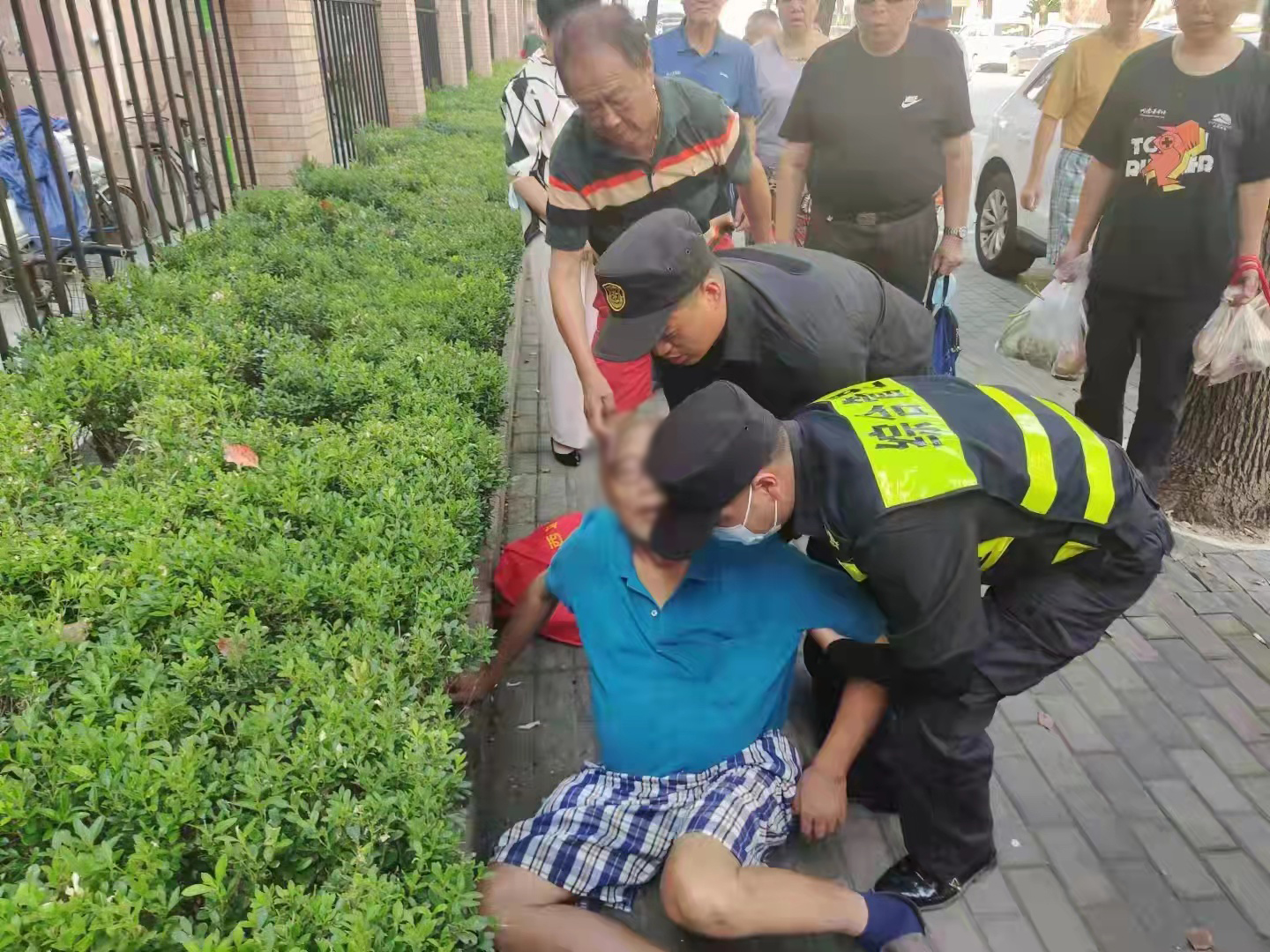 當(dāng)日8:15,劉大旺、王龍祥巡邏至楊南路洪山路路口恒宇小區(qū)西側(cè)時,發(fā)現(xiàn)一位老人躺在地上,嘴巴張開,狀態(tài)不對。劉大旺立即上前喊了兩聲老人家,但老人意識已經(jīng)模糊不清了,無法發(fā)出聲音來。情況危急,王龍祥立馬撥打120急救電話和派出所內(nèi)部電話。