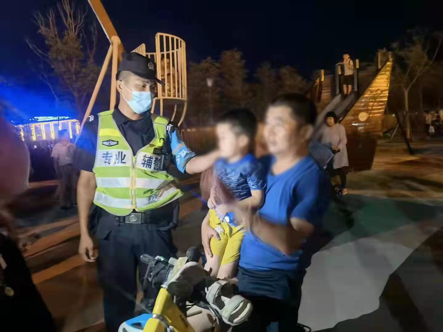 當(dāng)日18:30,滴水湖環(huán)湖景觀帶兒童樂園附近,一名游客與5歲的孩子走散,心急如焚,焦急地向宗保隊(duì)員張楠楠求助。