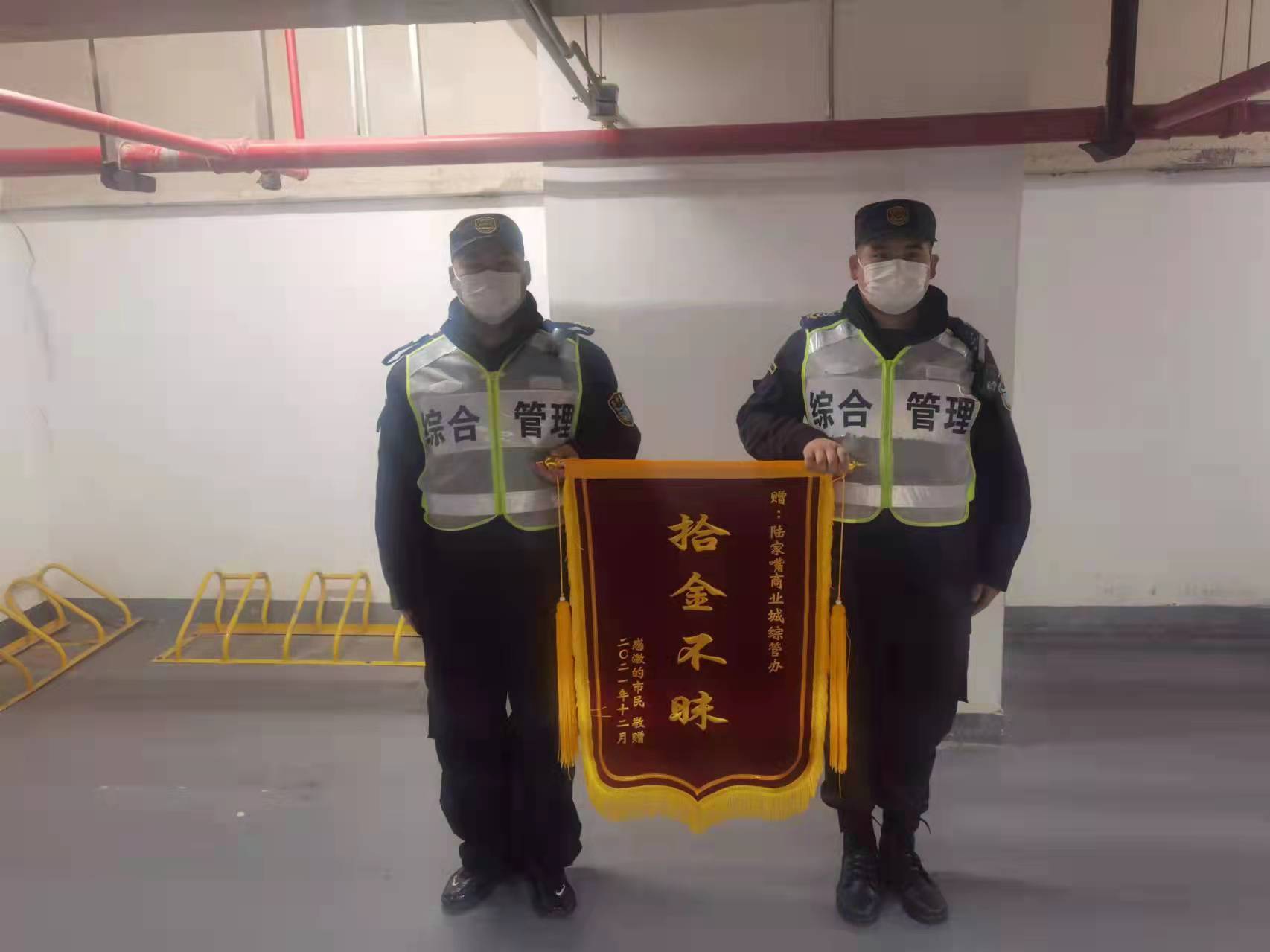 12月13日,宗保公司駐陸家嘴綜合管理項(xiàng)目隊(duì)員韋洪收到市民送來的一面繡有“拾金不昧”的錦旗,感謝他拾金不昧的行為。