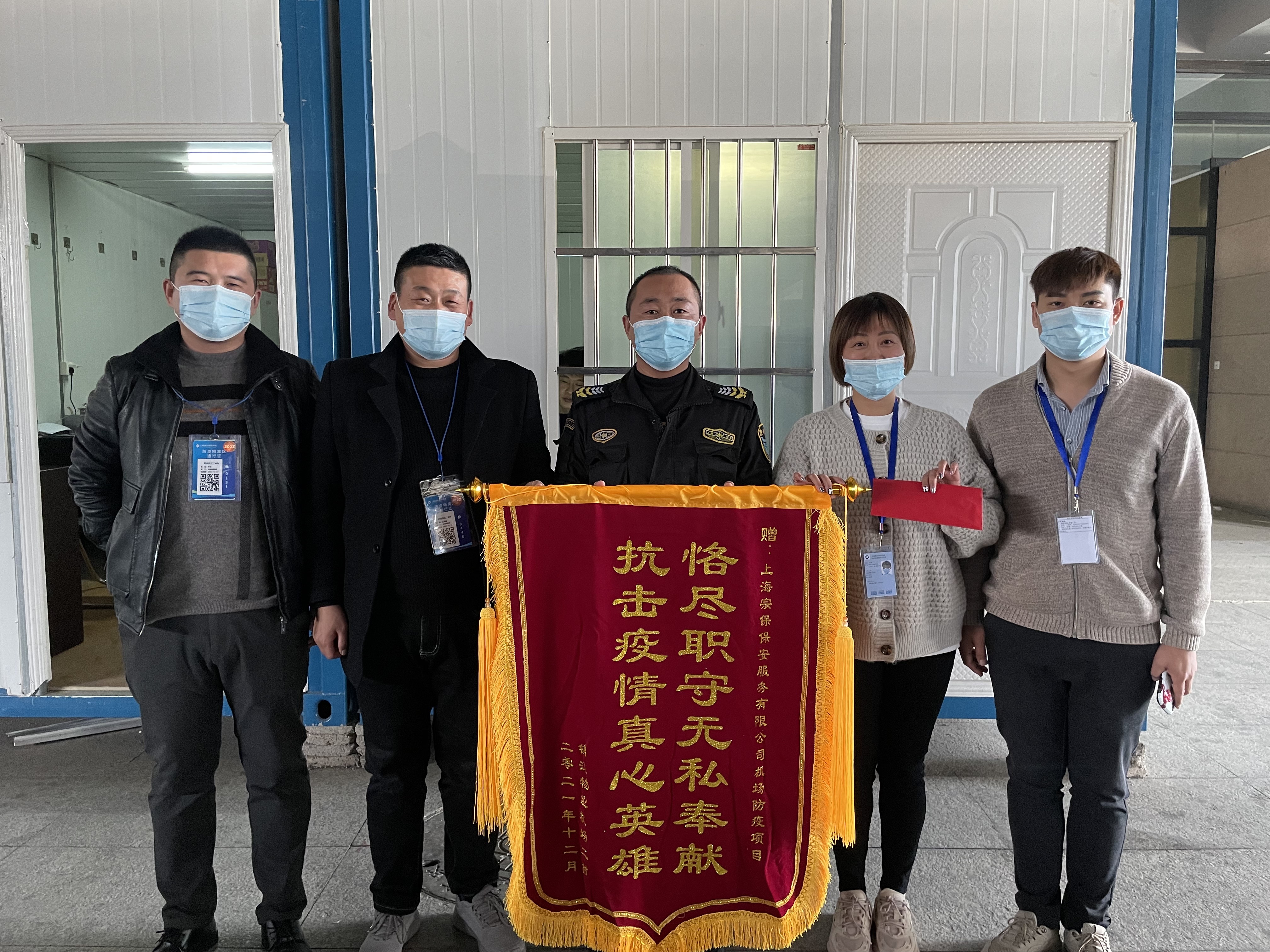 12月31日,錦江物業(yè)機(jī)場(chǎng)二村經(jīng)理莊敏和辦公室總監(jiān)孟銀行,將繡有“恪盡職守?zé)o私奉獻(xiàn) 抗擊疫情真心英雄”的錦旗和表?yè)P(yáng)信送到宗保公司機(jī)場(chǎng)防疫項(xiàng)目,感謝宗保公司對(duì)其工作的大力支持,表?yè)P(yáng)隊(duì)員趙長(zhǎng)山突出的工作表現(xiàn)。