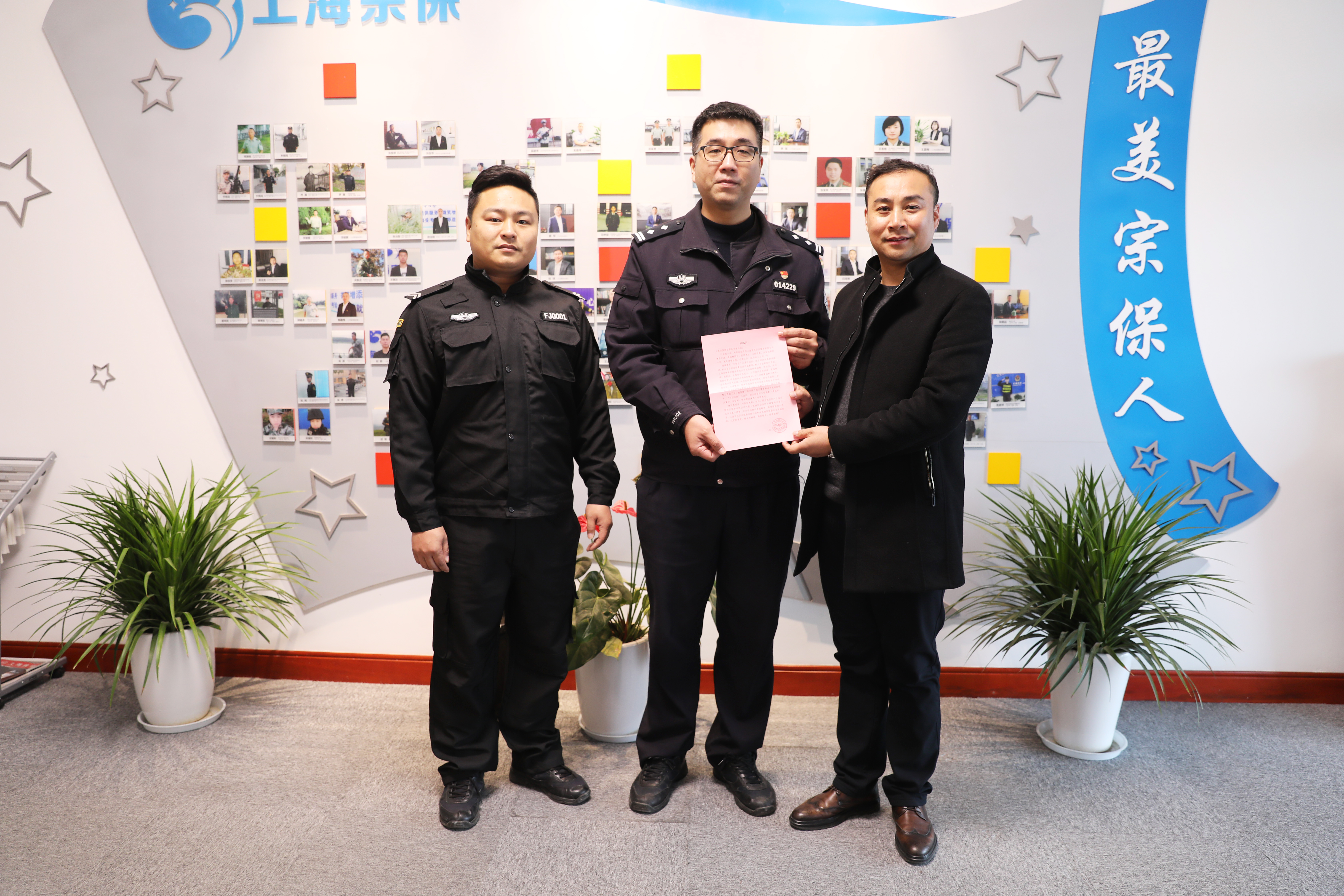 1月12日,宗保公司駐祝橋項目收到祝橋鎮(zhèn)居家養(yǎng)老服務中心送來的繡有“愛崗敬業(yè)盡職盡責 高效周到衛(wèi)士本色”的錦旗,贊揚宗保隊員馬朝清優(yōu)異的工作表現(xiàn)。