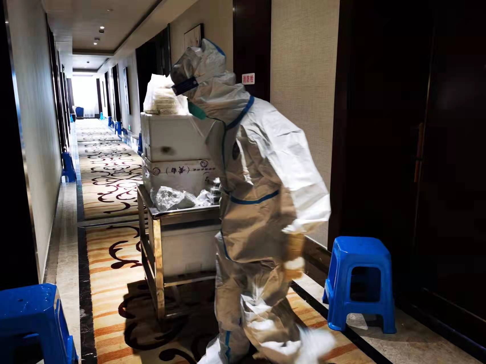 期間,員工們不懼疫情、連續(xù)奮戰(zhàn),放棄周末休息時間,24小時堅守在隔離點,做好日常管理、消毒、快遞收取、生活物資接收、體溫測量等工作,配合街道勸離前來探望親友,防止病毒交叉感染。