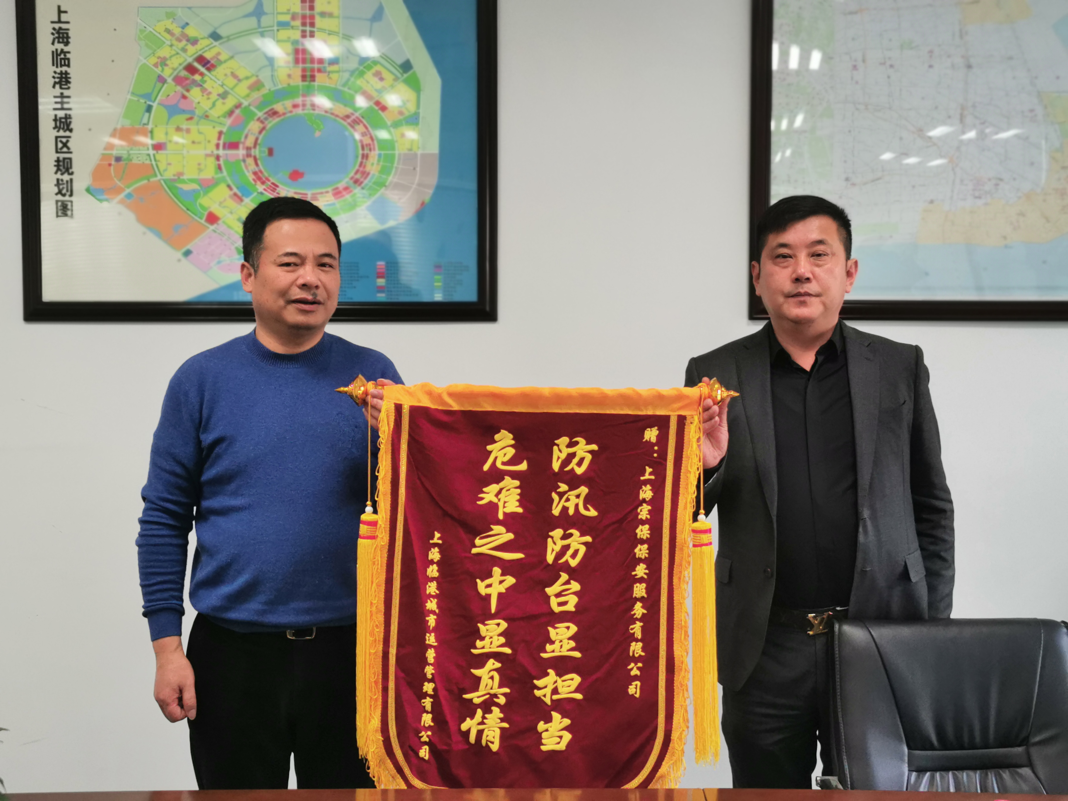 1月19日,宗保公司收到上海臨港城市運營管理有限公司一面繡有“防汛防臺顯擔當 危難之中顯真情”的錦旗,表揚公司在抗擊臺風期間優(yōu)異的工作表現(xiàn)。