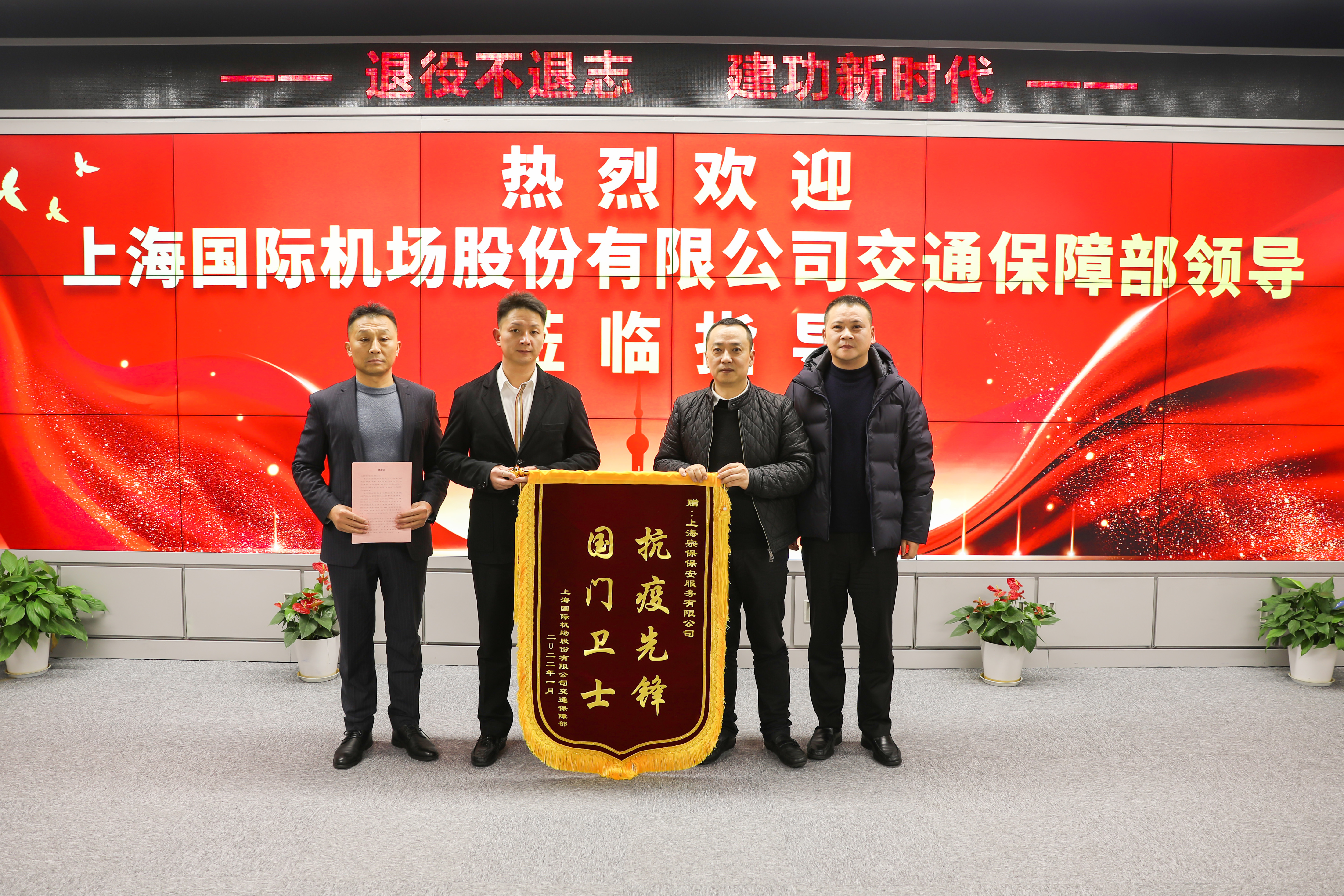 1月25日上午,上海國(guó)際機(jī)場(chǎng)股份有限公司安檢護(hù)衛(wèi)保障部黨委書記鮑飛榮、紀(jì)委書記陳長(zhǎng)波將一面繡有“防疫一線勇挑重?fù)?dān)當(dāng)尖兵 守護(hù)空港忠誠(chéng)履職保平安”的錦旗送到宗保公司,感謝公司對(duì)浦東機(jī)場(chǎng)防疫工作的大力支持和突出表現(xiàn)。
