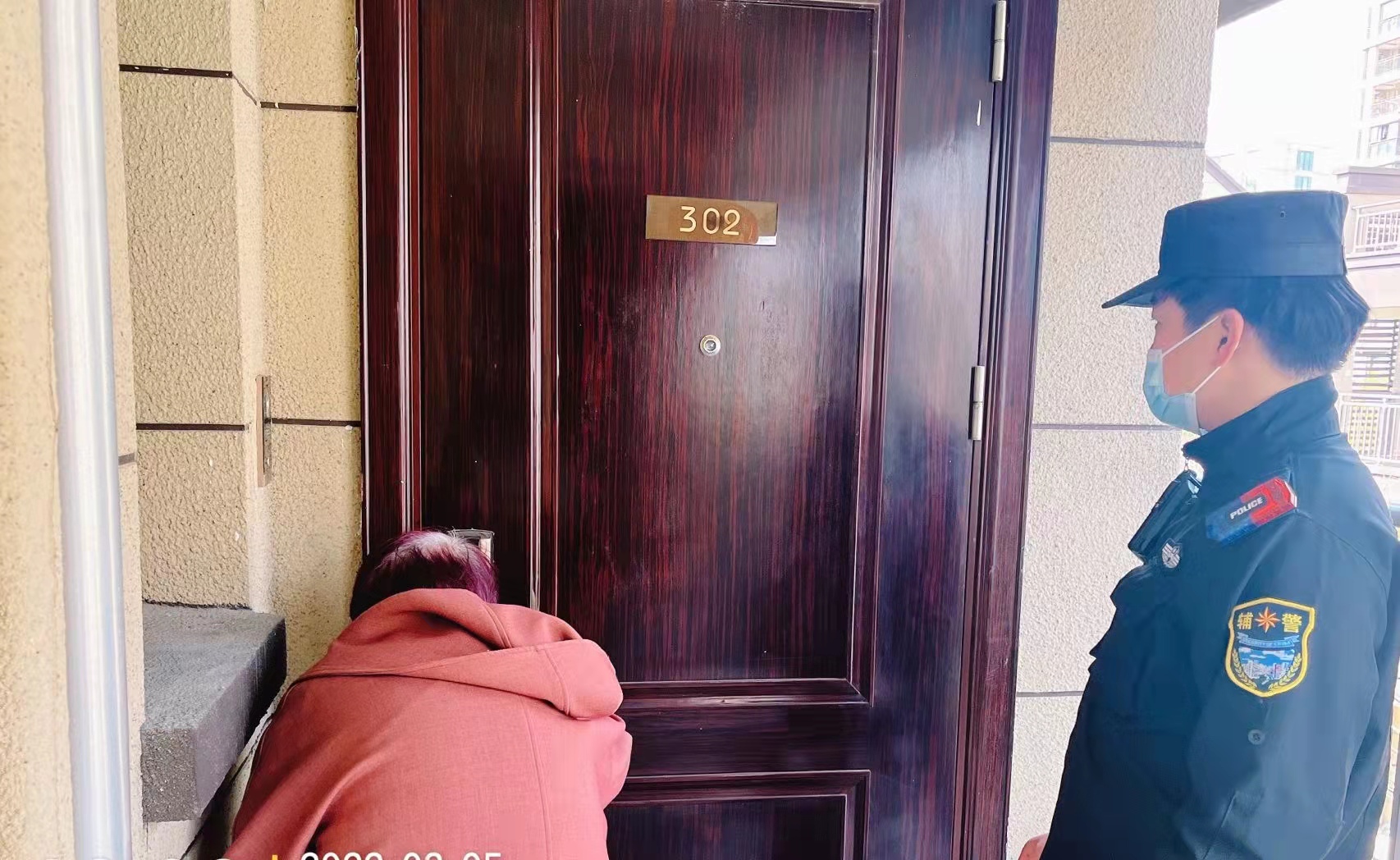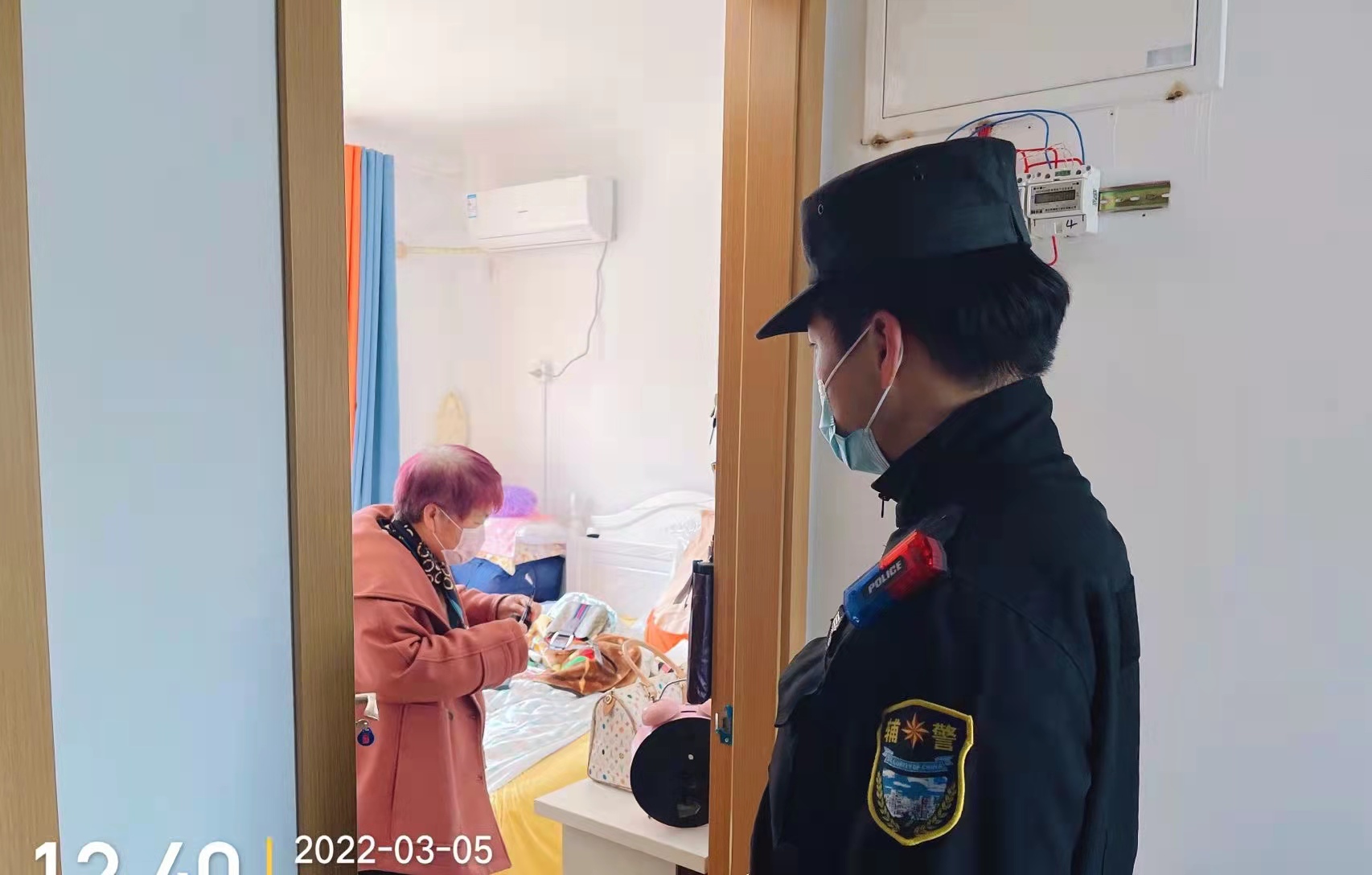 3月5日,宗保公司駐臨港泥城輔警項目隊員楊云清、張亞軍幫助老人回家。