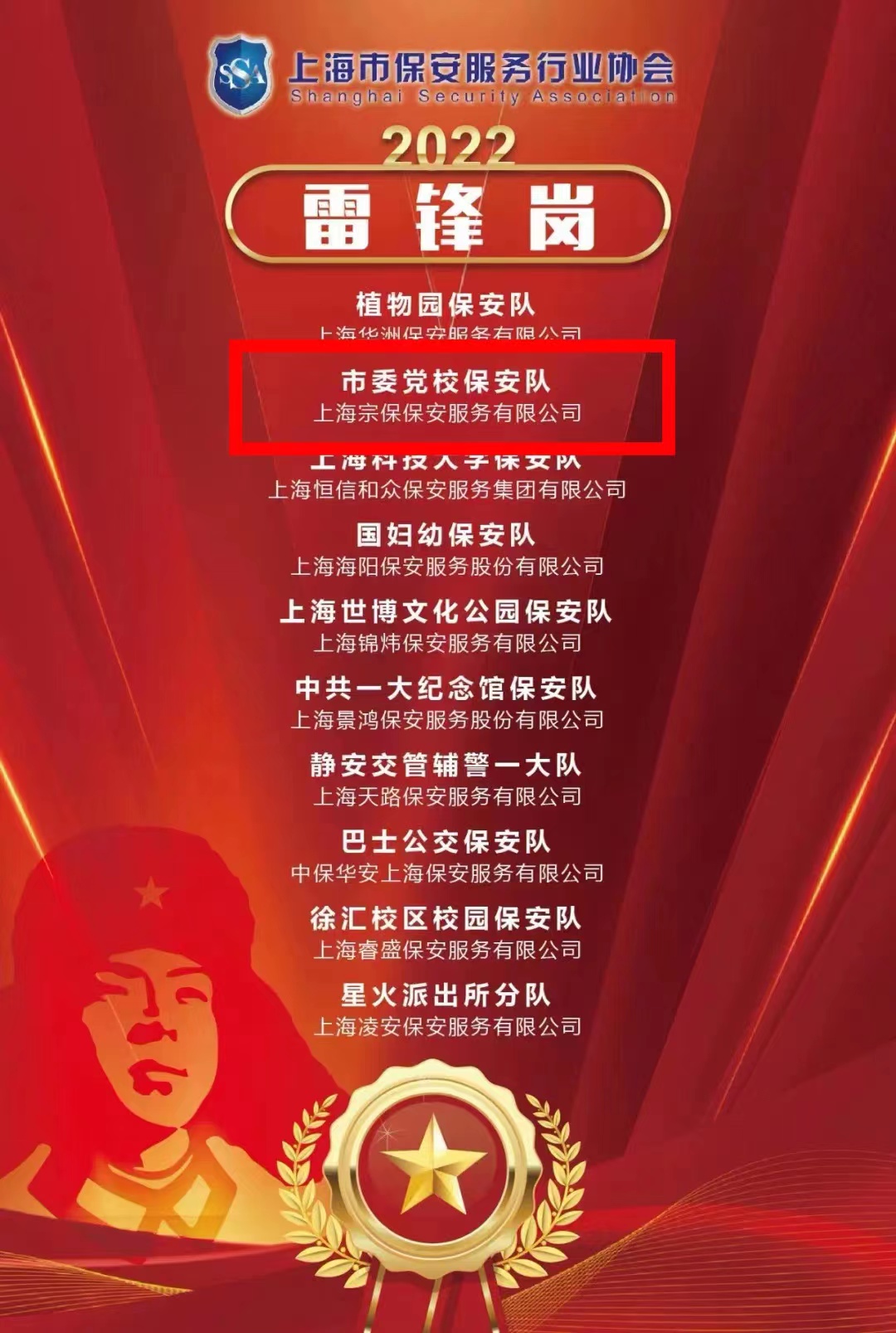近日,上海市保安服務行業(yè)協(xié)會公布了“雷鋒崗”“學雷鋒標兵”“巾幗保安”評選結(jié)果,宗保公司1個項目隊和3名隊員分獲殊榮。