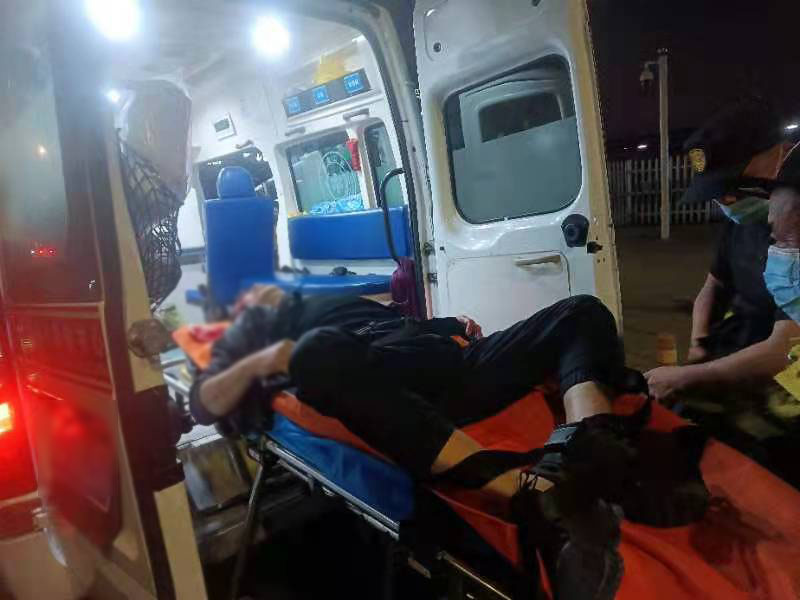 陰雨天氣,氣溫較低。在等待救護(hù)車時(shí),為防止受傷男子感冒,細(xì)心的鄭之元脫下工作服,披在他身上。很快,120救護(hù)車到達(dá)現(xiàn)場(chǎng),兩人又幫助急救人員將傷者抬上車,送往醫(yī)院救治。