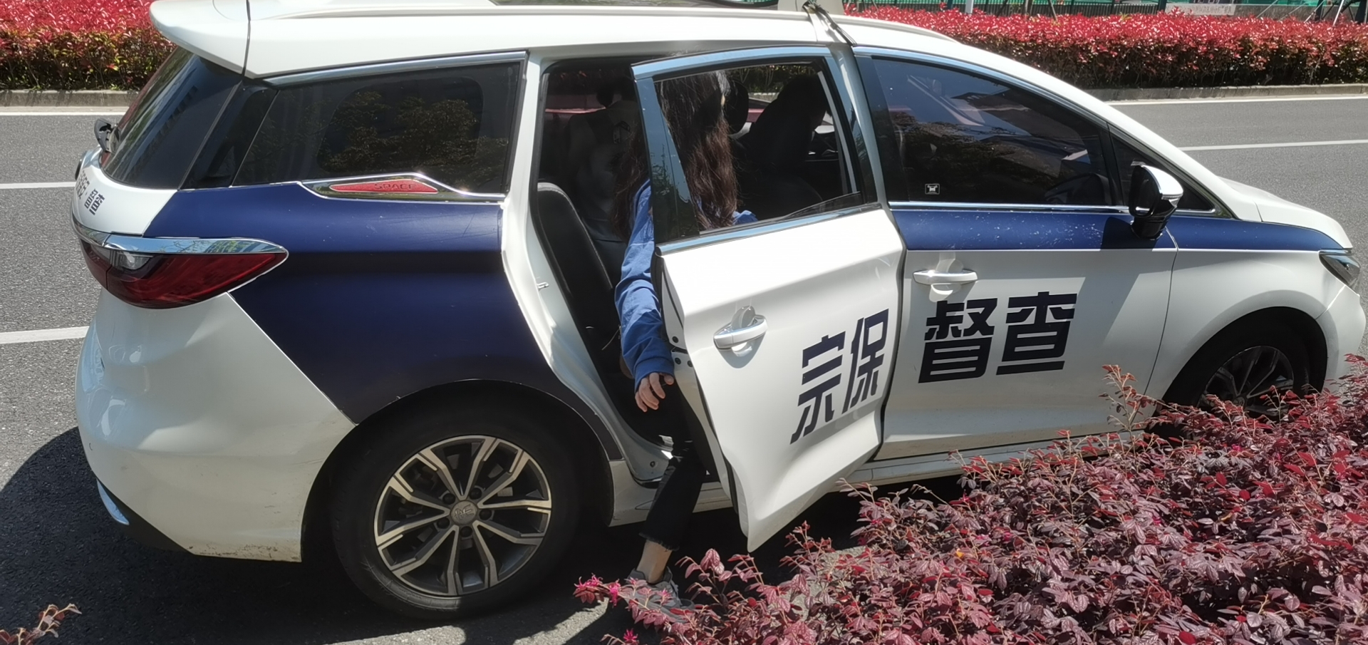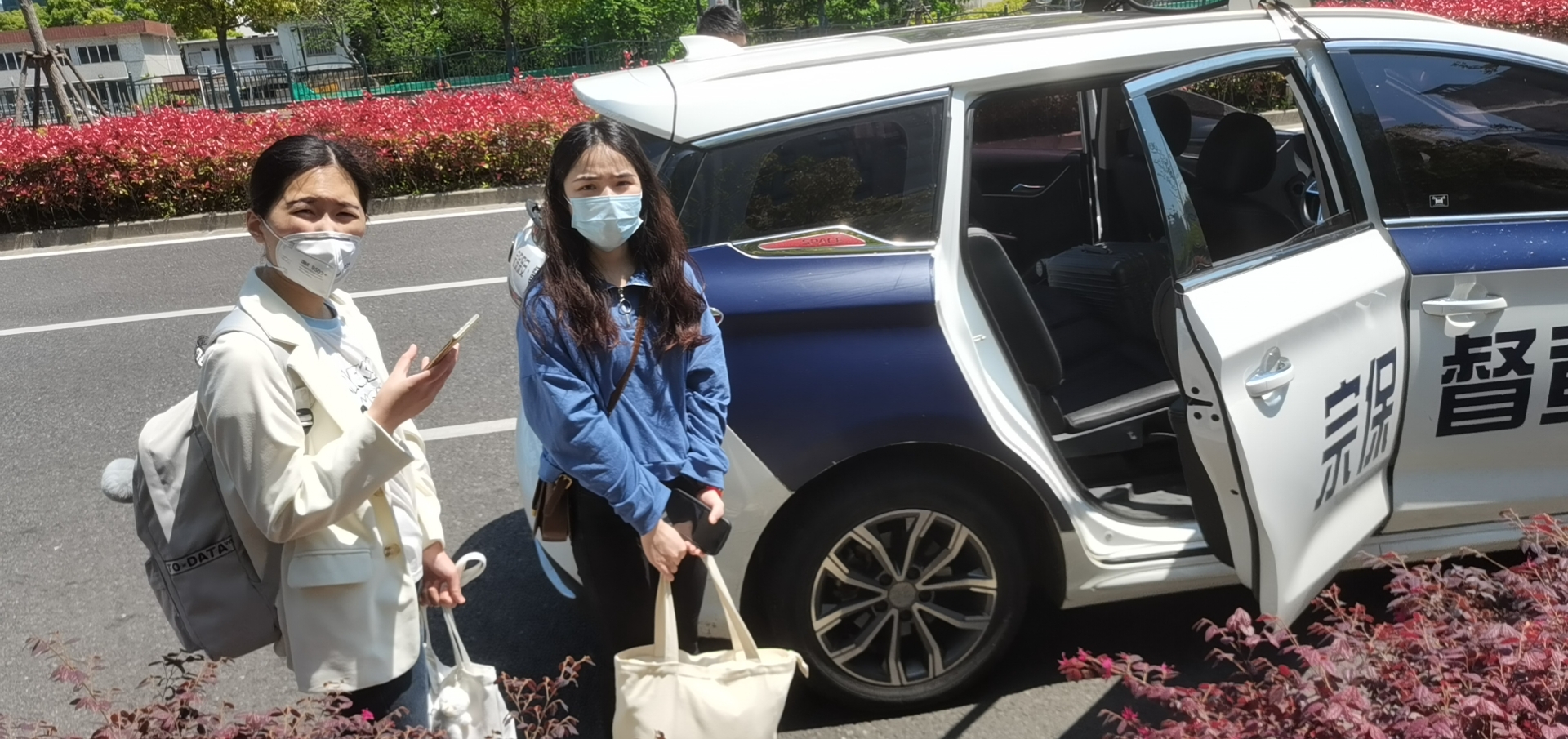 4月16日,宗保公司督察隊員吳寒準時將兩名醫(yī)護人員送到源深路方艙醫(yī)院開展防疫工作。