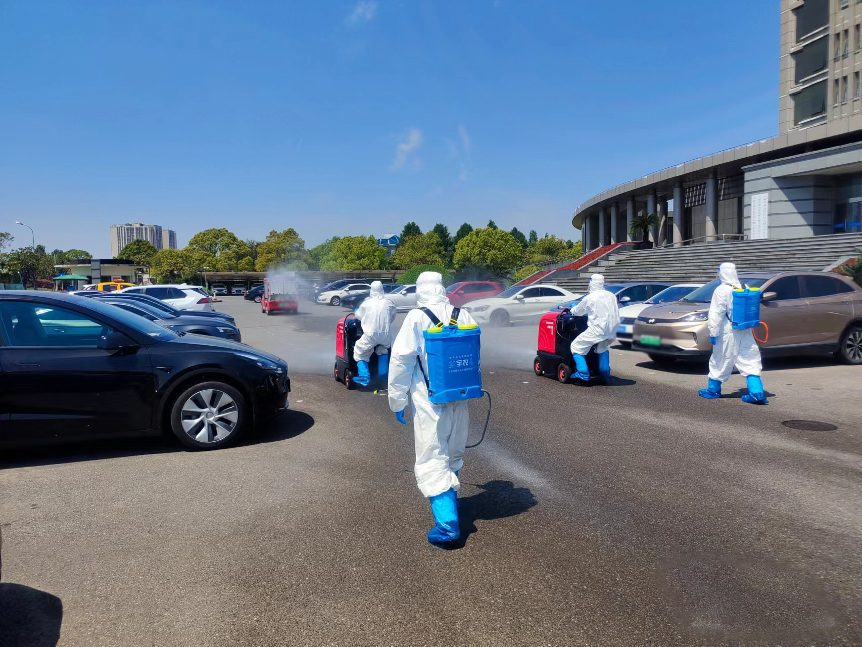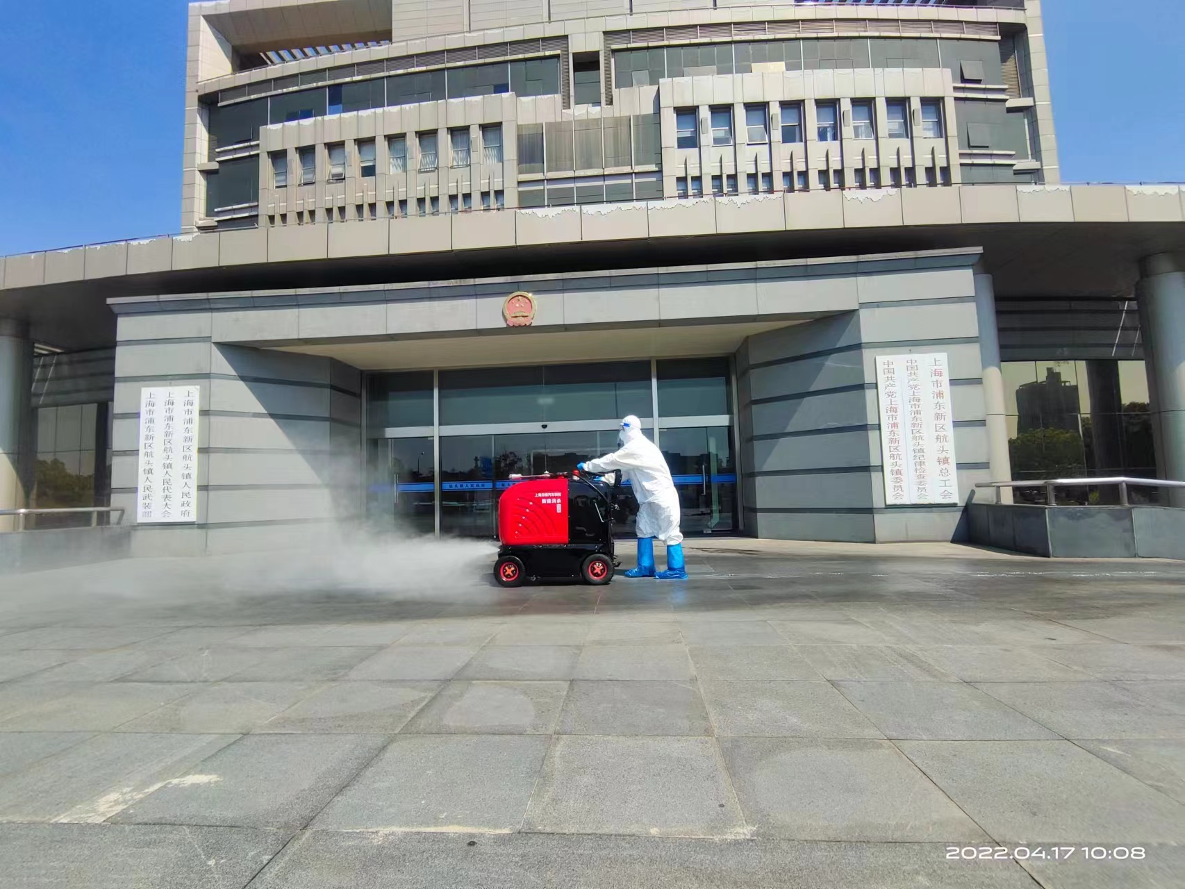4月17日,根據(jù)航頭鎮(zhèn)疫情防控部門的部署和安排,公司選派8名消殺人員,身穿防護服,佩戴防護面罩,攜帶4臺霧化消毒設備,駕駛2輛微型消防車前往航頭鎮(zhèn),協(xié)助鎮(zhèn)相關部門開展環(huán)境集中消殺工作。