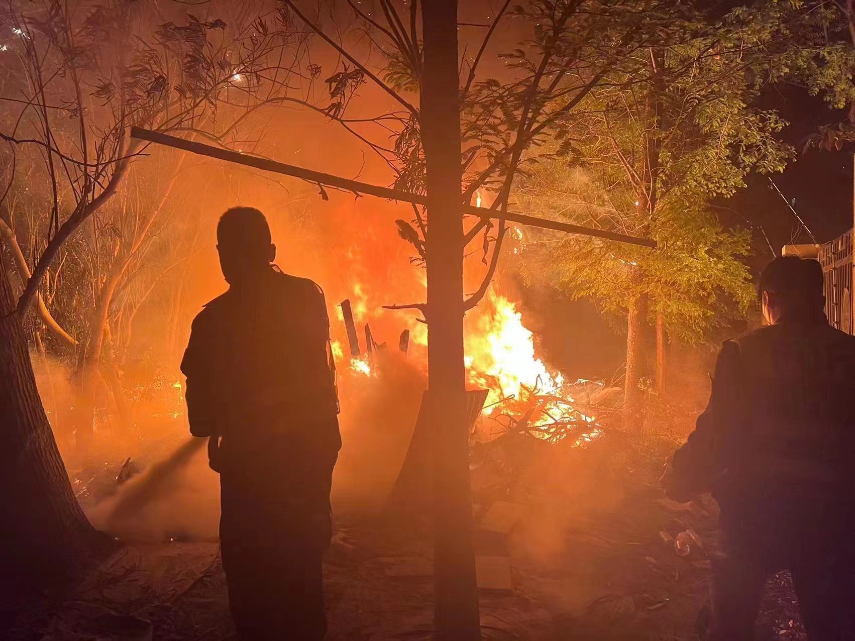 當日19:50,泥城輔警項目隊員駕駛著一輛大通在鴻音路與正茂路路口巡邏時,發(fā)現(xiàn)路邊的小樹林里起火,火借風勢快速向周邊蔓延,存在著極大的安全隱患。情況緊急,隊員立即撥打119報警電話,并趕緊從車上拿出滅火器,沖進小樹林滅火。