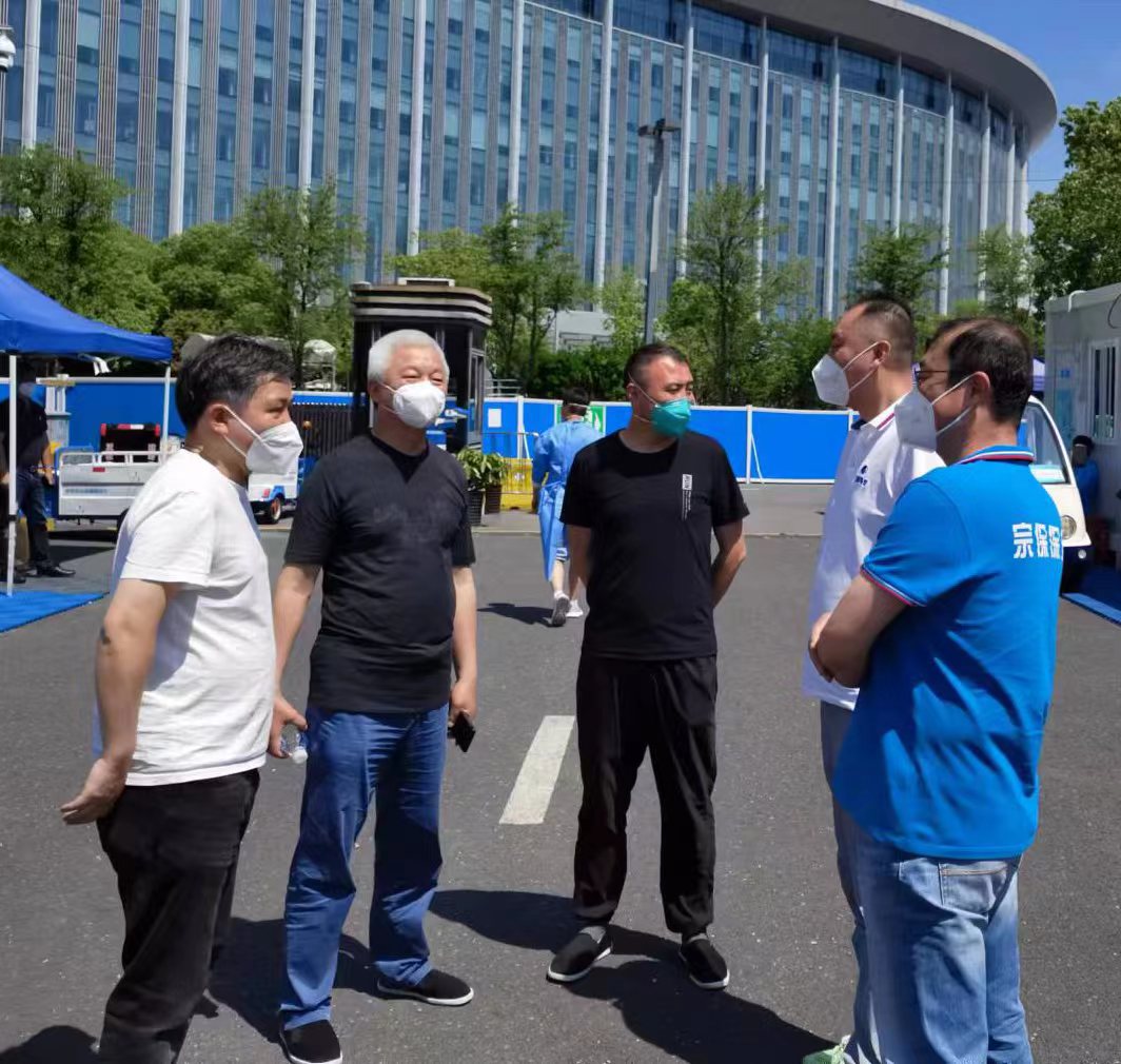 5月31日,上海地產(chǎn)(集團(tuán))有限公司領(lǐng)導(dǎo)來到國家會展中心方艙醫(yī)院看望慰問宗保公司員工,宗保公司董事長王耀全程陪同。