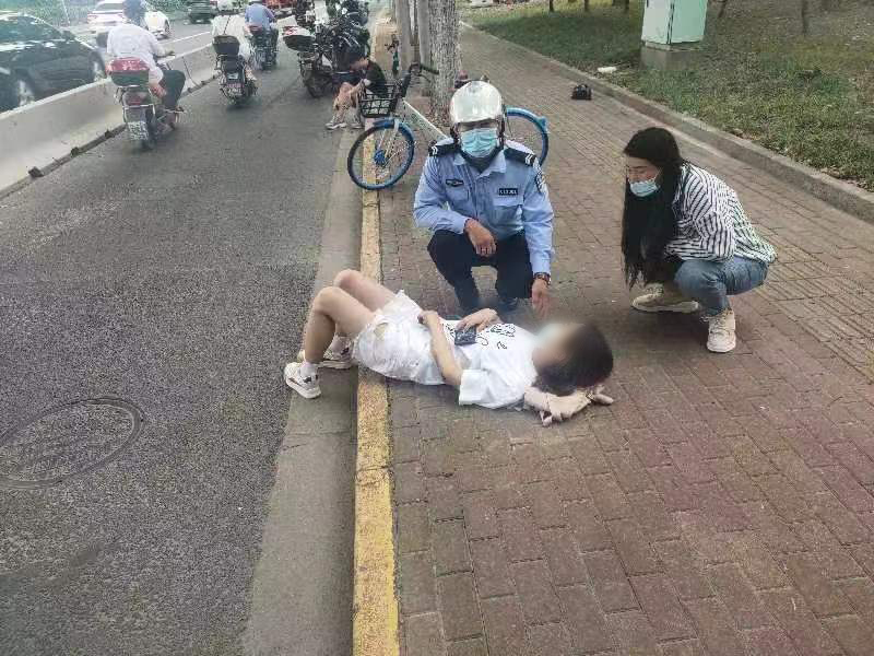 一位熱心的路人幫忙撥打了120急救電話。王團結(jié)安撫著白衣女子的情緒,讓她平躺著不要動。吳雷則守在受傷男子身旁,并將現(xiàn)場的情況報了警。