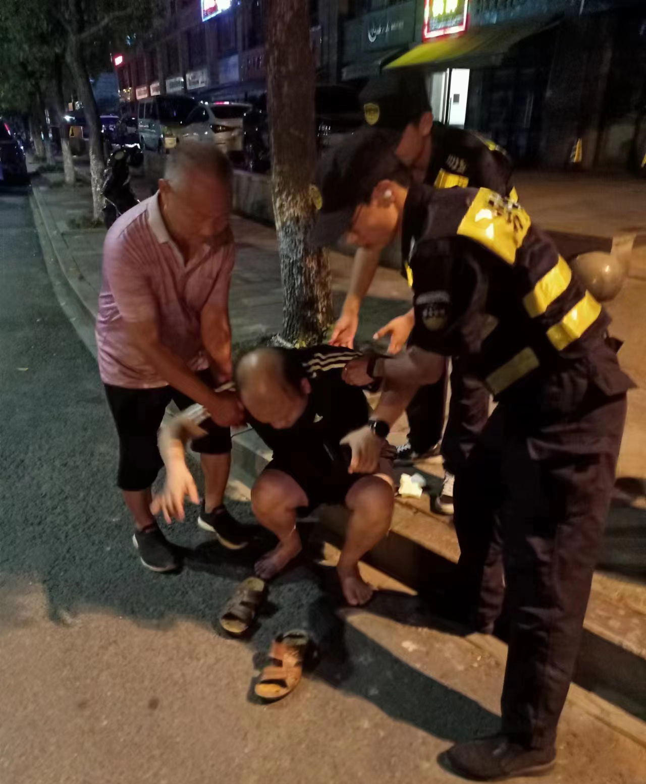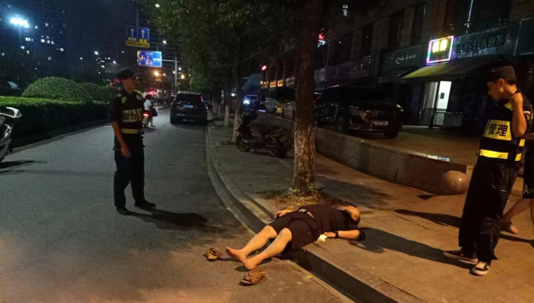 當(dāng)日22:36,張奇、蘇建程和江偉峰在昌運(yùn)里通運(yùn)街與儲(chǔ)運(yùn)路交叉口附近巡邏時(shí),發(fā)現(xiàn)一名中年男子躺倒在路邊,便隨即上前察看。
