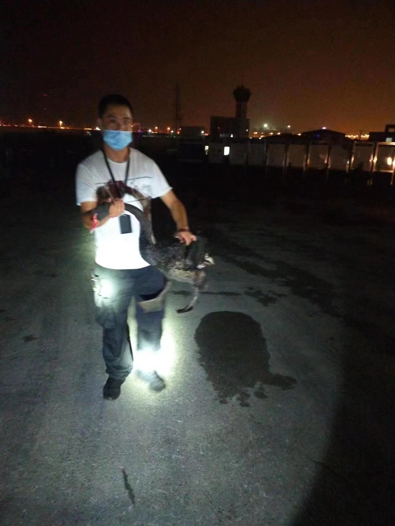 當(dāng)天23:00,李漢濤和姜永輝在海堤巡查時,發(fā)現(xiàn)一只受傷的黑天鵝。當(dāng)時,這只大鳥精神不振,渾身顫抖,體力似乎不支,已經(jīng)無法自行飛起。兩人迅即將情況上報給派出所值班民警,并按指示將黑天鵝帶回派出所做進(jìn)一步處理。
