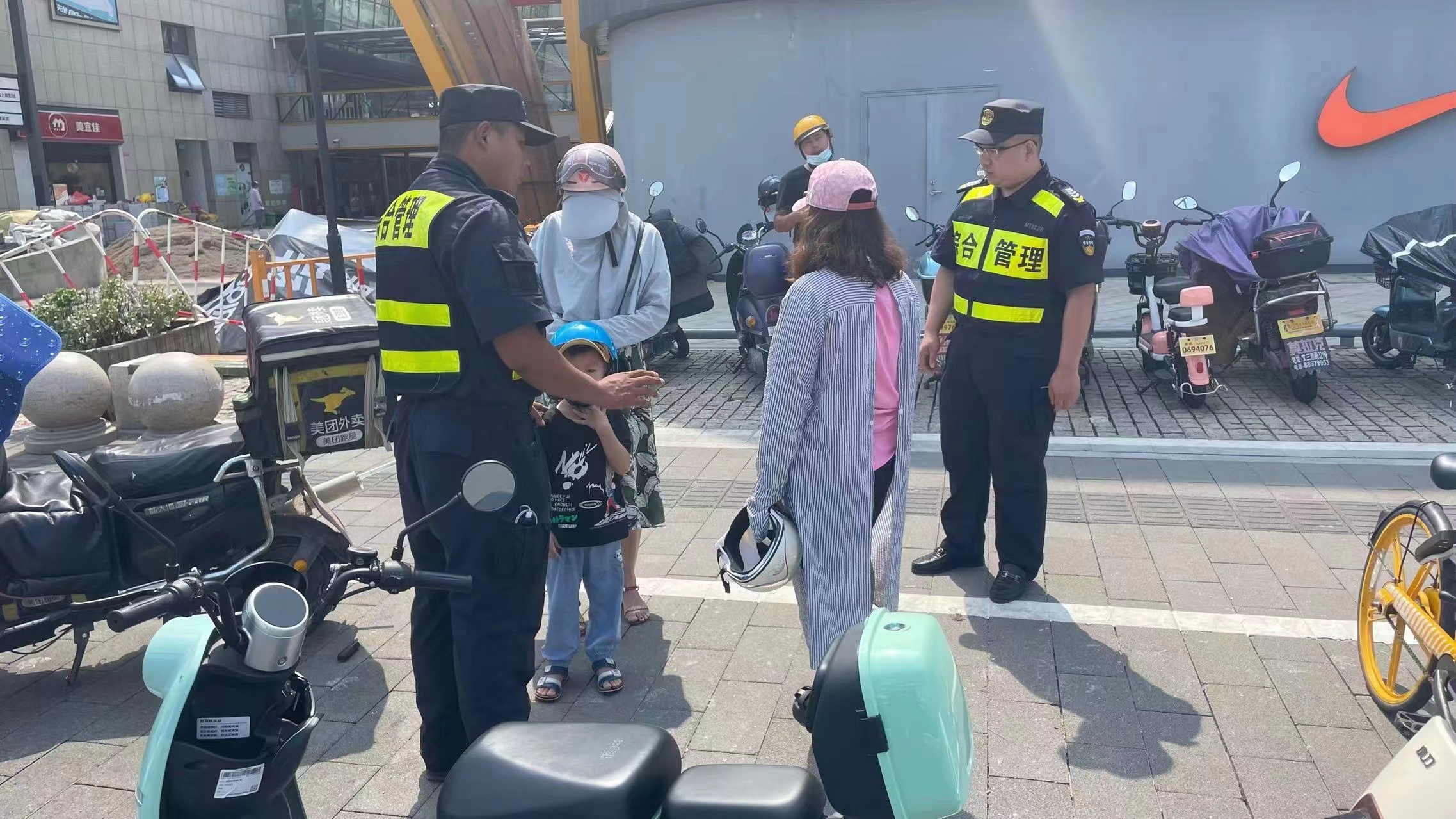 當(dāng)天10:45,郭可飛、董懷義和魏文鵬在五常大道樂天城附近巡查時,遇到一起交通事故,一輛載著小孩的電瓶車與一輛女子騎的電瓶車相撞,雙方相互指責(zé)爭論不休。