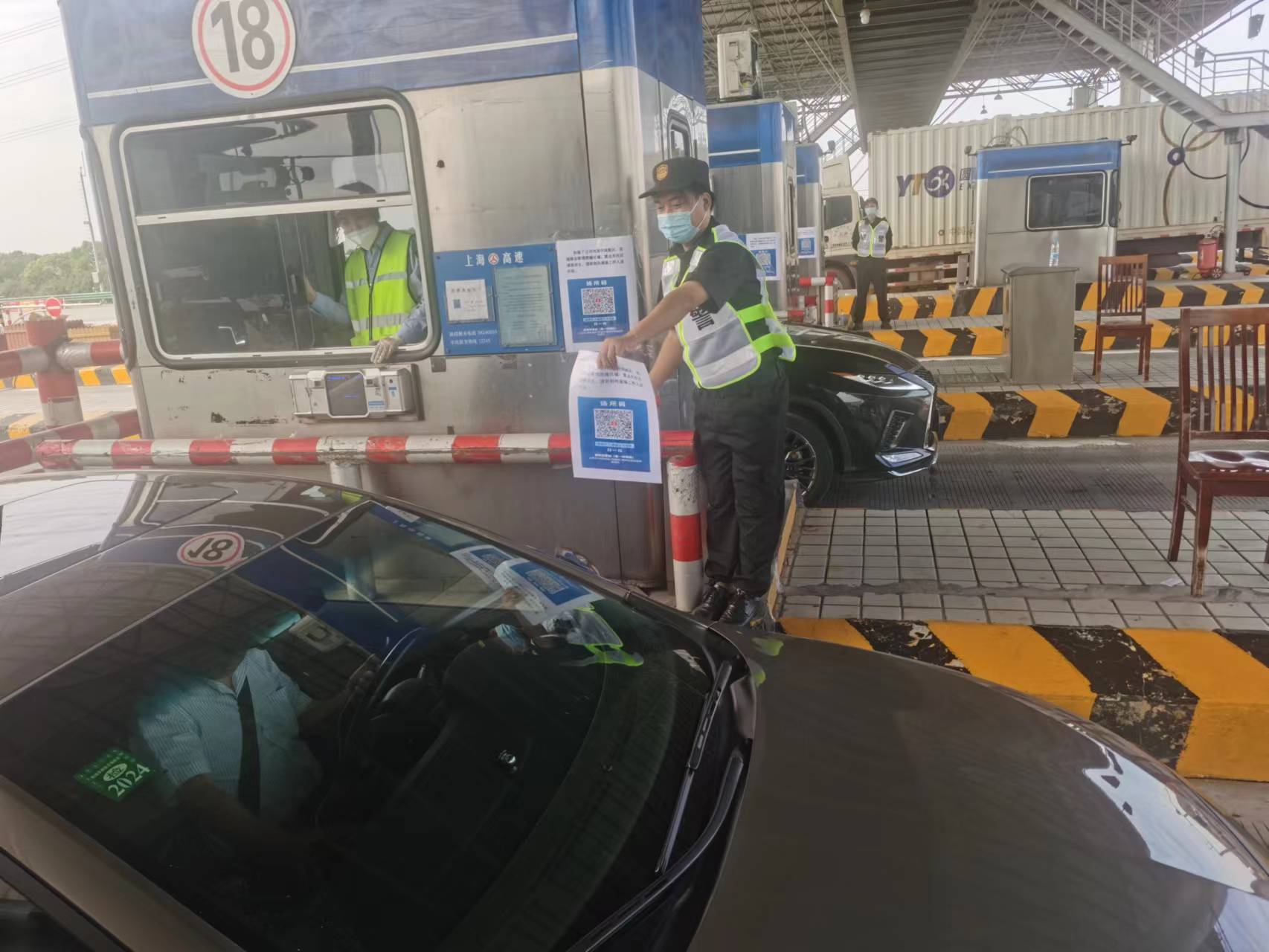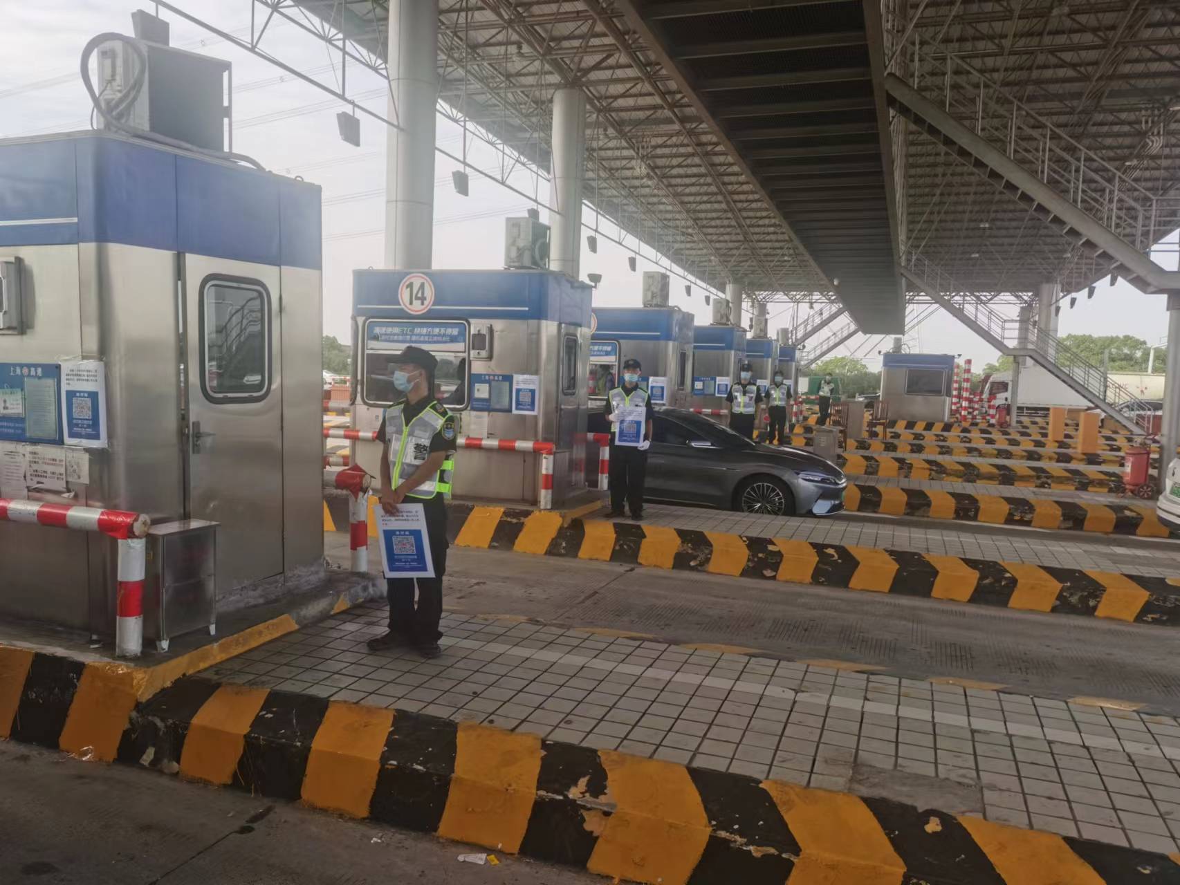 “您好!請掃場所碼通行,請主動(dòng)進(jìn)行核酸檢測!”宗保公司根據(jù)有關(guān)疫情防控部門的部署和安排,進(jìn)駐高速公路收費(fèi)站,協(xié)助對所有入滬車輛人員進(jìn)行掃碼和核酸檢測。