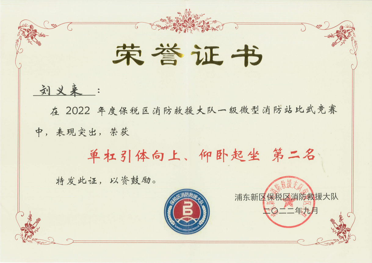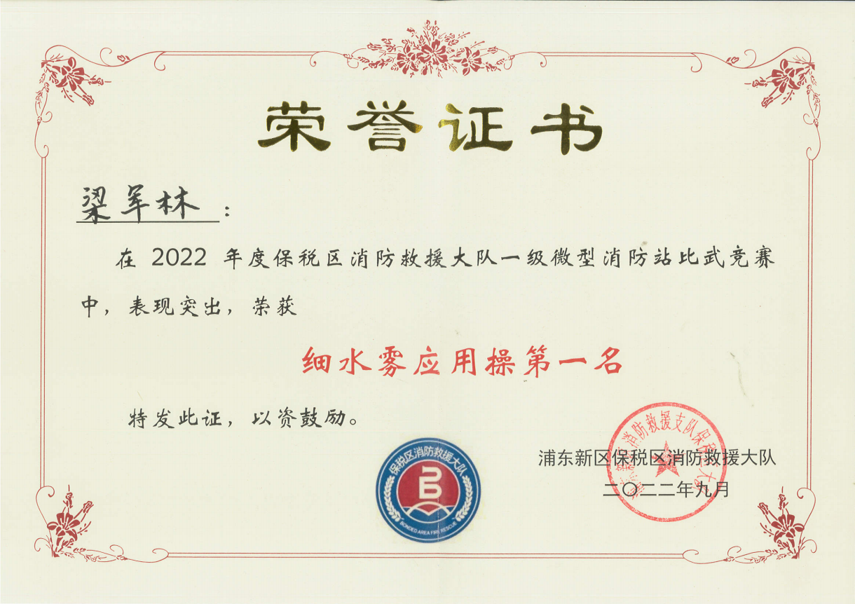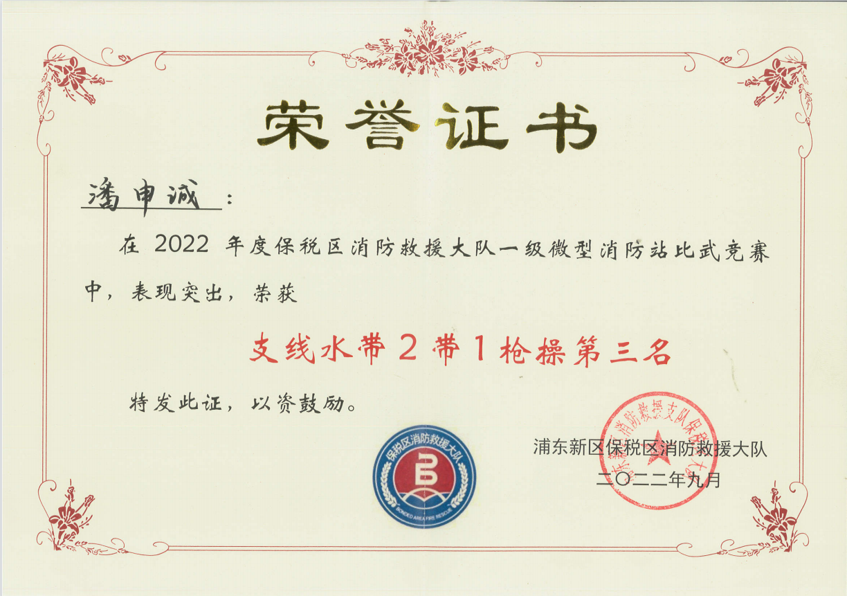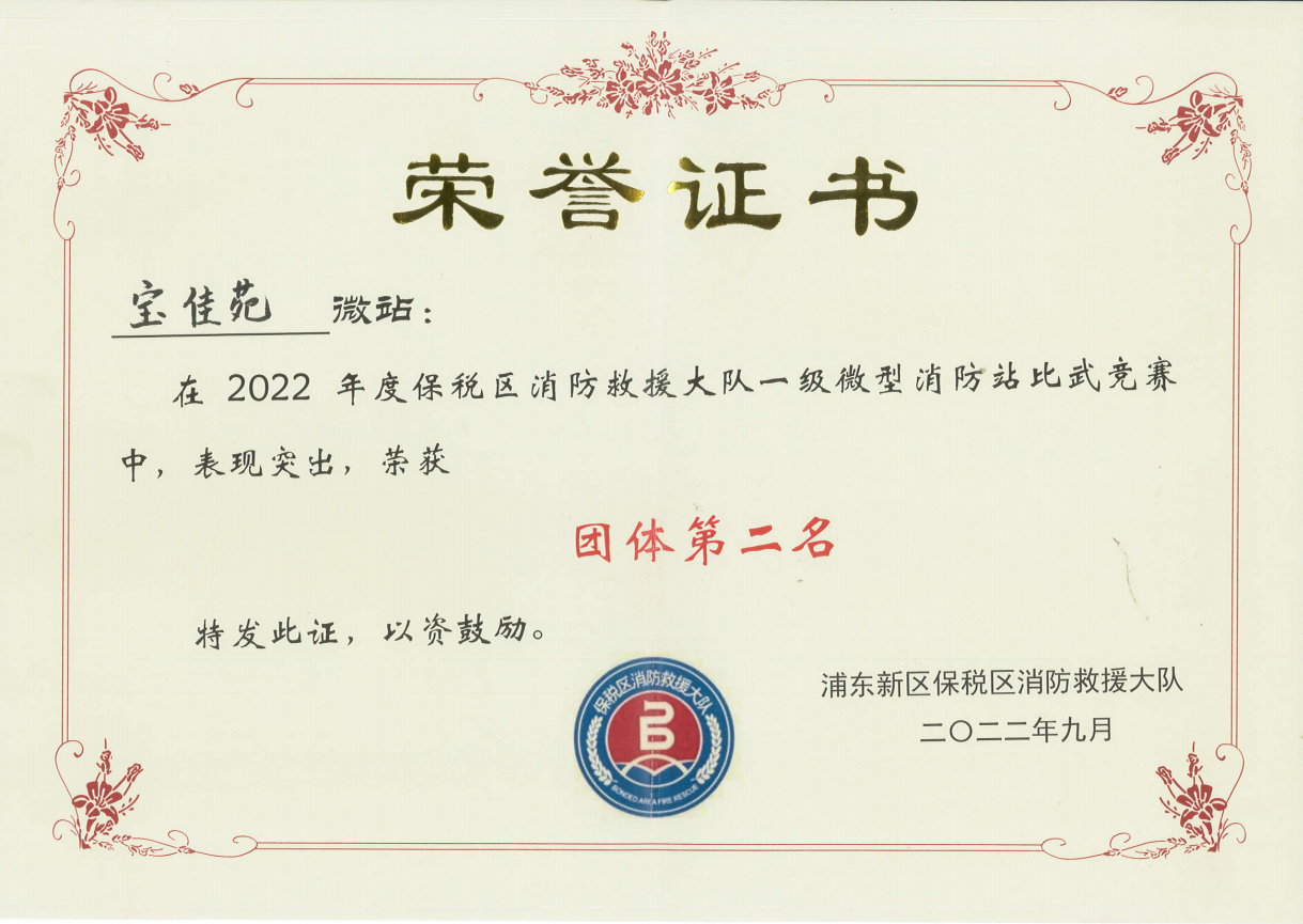 9月28日,宗保公司員工參加2022年度浦東新區(qū)保稅區(qū)消防救援大隊一級微型消防站比武競賽,經(jīng)過激烈角逐,公司參賽員工不畏強手、力爭上游,最終在多項比賽活動中榮獲佳績,展現(xiàn)了公司員工過硬的業(yè)務(wù)技能,彰顯了公司員工進取的精神風(fēng)采。