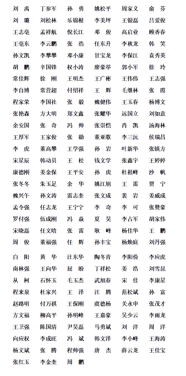 公司董事會(huì)在各項(xiàng)目、各區(qū)域推薦,廣泛征求意見的基礎(chǔ)上,評(píng)選出了21個(gè)“優(yōu)秀團(tuán)隊(duì)”、183名“優(yōu)秀員工”、45名“優(yōu)秀退役軍人員工”、71名“優(yōu)秀骨干”和14名“宗保風(fēng)尚獎(jiǎng)”,現(xiàn)對(duì)評(píng)選出的先進(jìn)集體和先進(jìn)個(gè)人予以通報(bào)表彰。