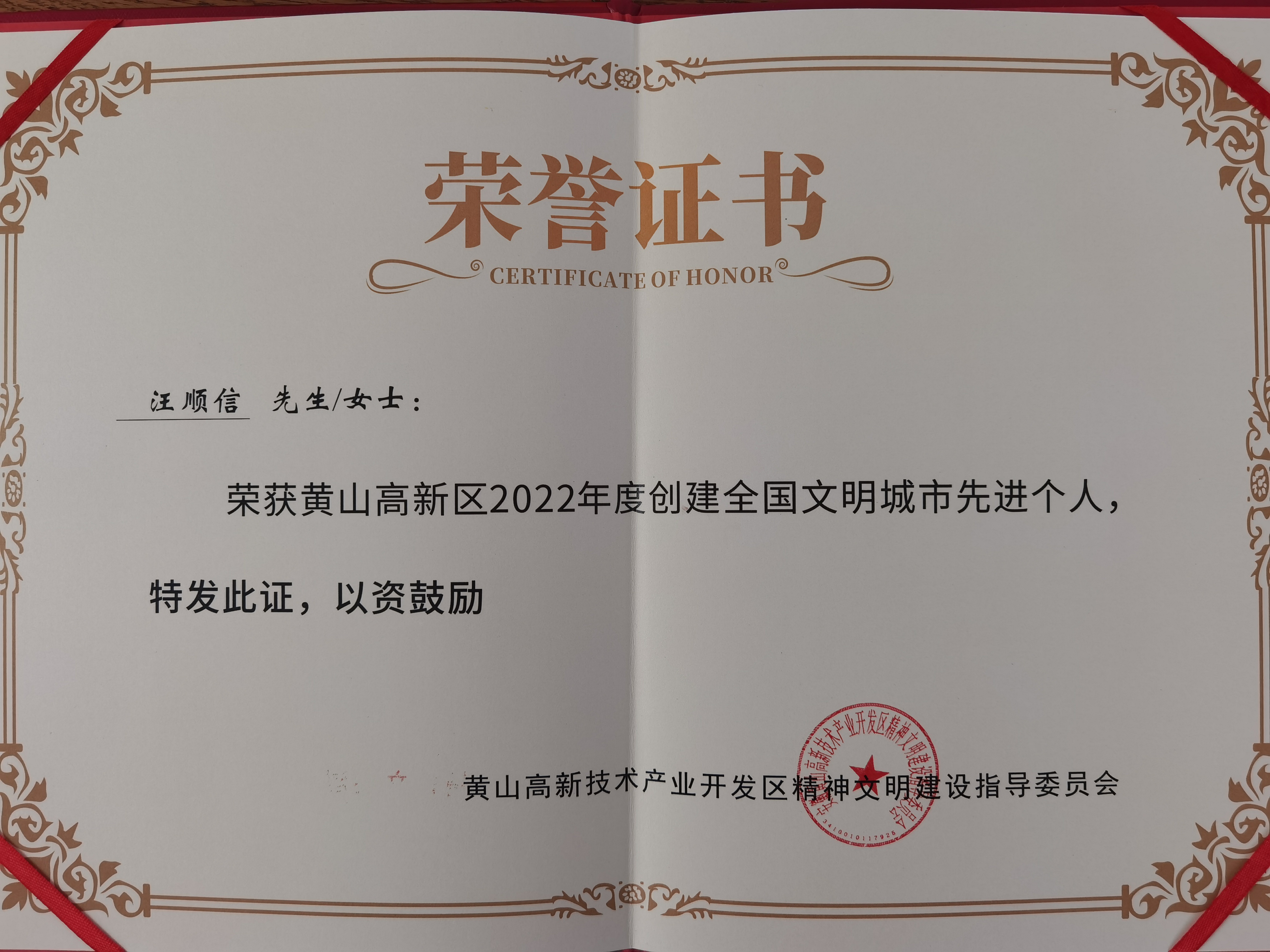 榮譽是一種認可和鼓勵,同時也是一種責任與擔當。宗保員工將珍惜榮譽、再接再厲,認真履行好工作職責,按照黃山高新區(qū)管委會的工作部署和要求,以更加飽滿的工作熱情、更加高嚴的工作標準,完成好高新區(qū)領導賦予的各項工作任務。
