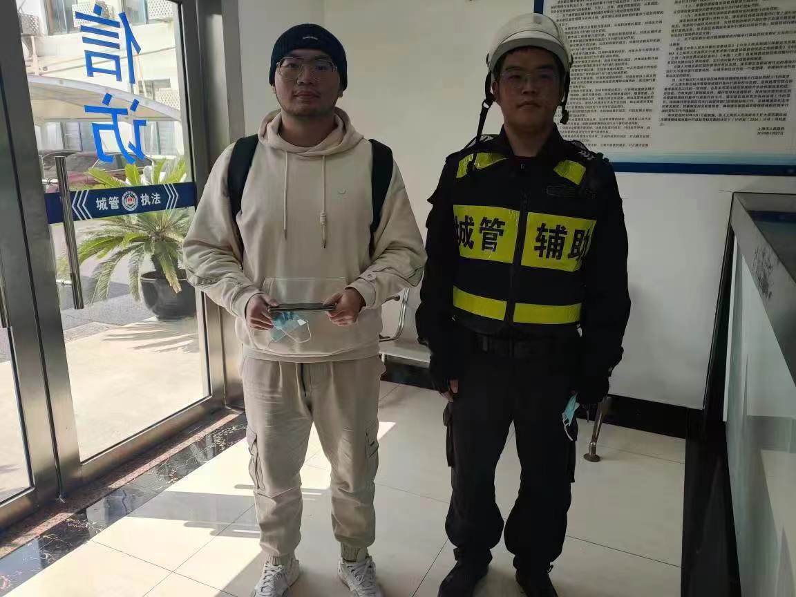 約10:30,一位自稱是失主、從別人處獲知手機信息的男子,來到城管中隊認領(lǐng)手機。王軍營問明情況,確認該男子是失主后,將手機交還給了他。男子拿著手機,連連向王軍營表示感謝。