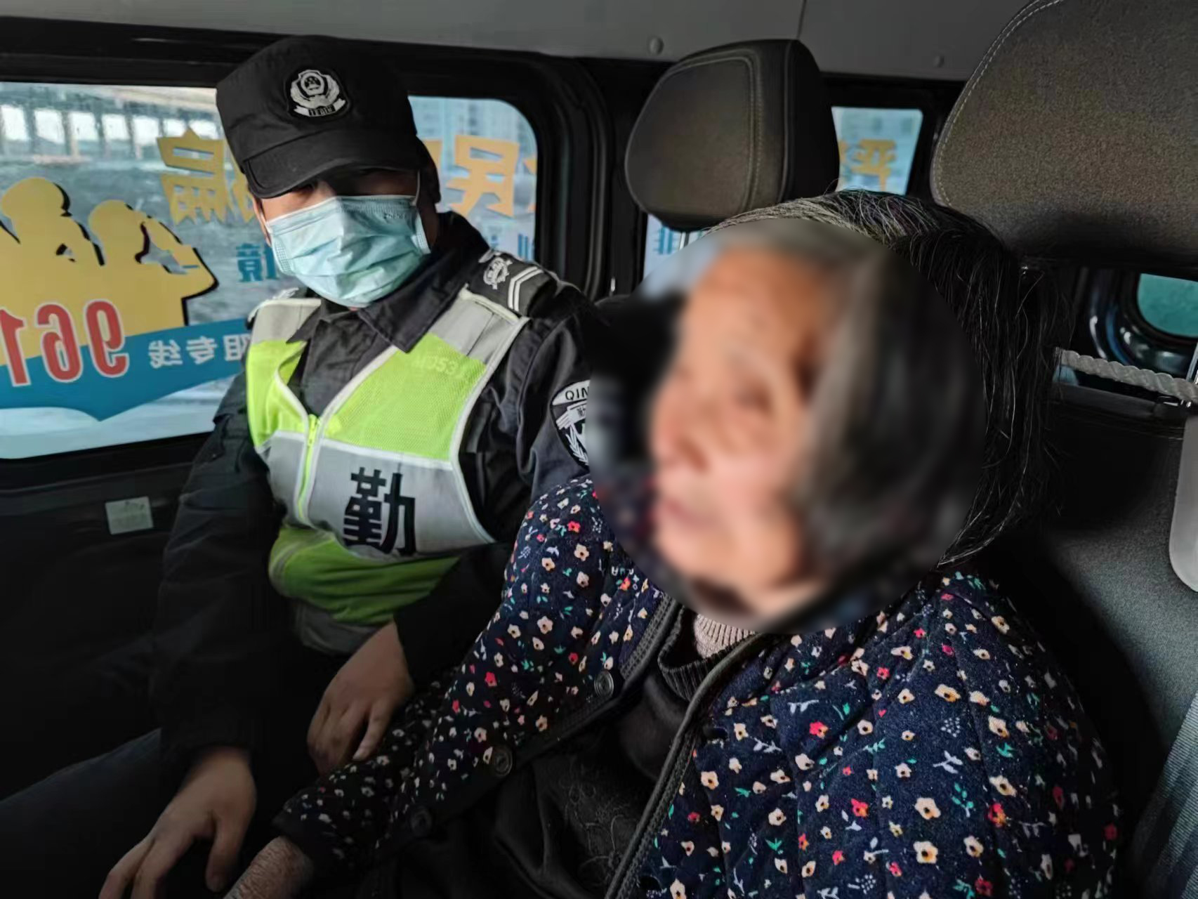 老人年紀(jì)大了,記性不太好,說不清楚自己的姓名、家人的聯(lián)系方式、家庭的具體住址等關(guān)鍵信息。兩人只好先將老人扶到巡邏車內(nèi)休息,并向項(xiàng)目隊(duì)長報(bào)告了相關(guān)情況,同時(shí)聯(lián)系了派出所值班民警。